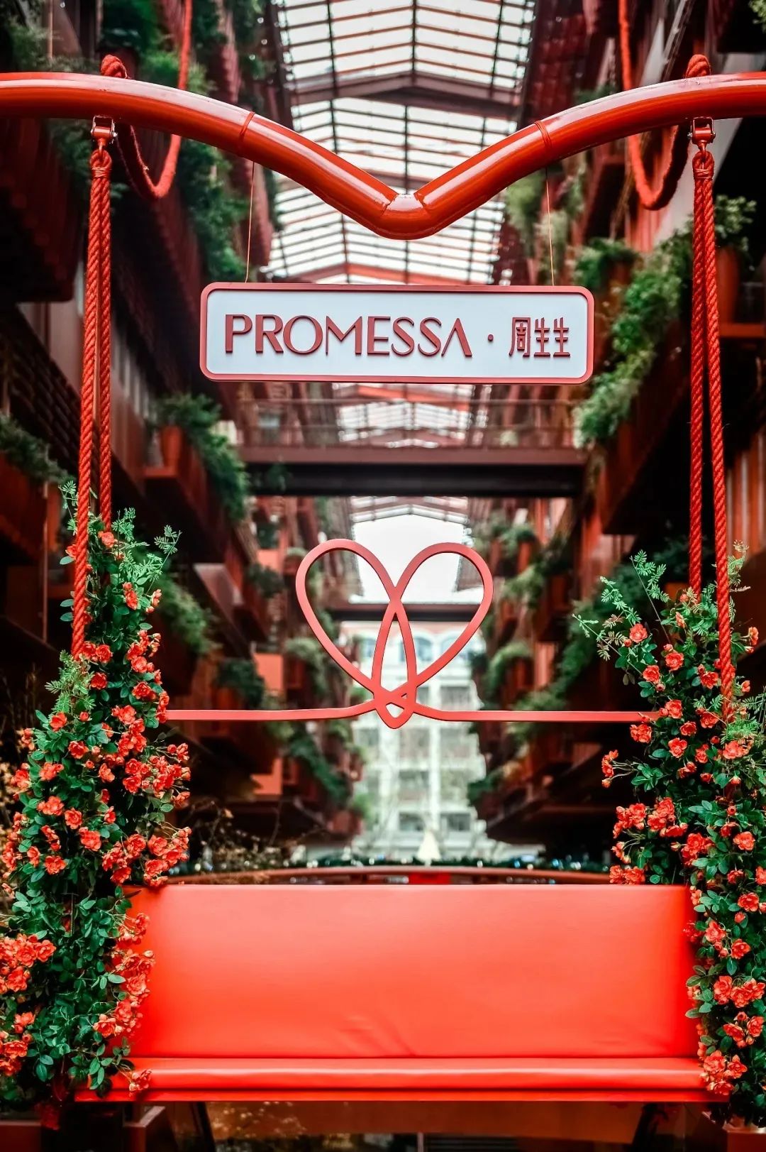 PROMESSA·周生生「缘分红绳秋千」位于恒基·旭辉天地,「缘分红绳秋千」和这座环境优美的艺术级建筑互相映衬,为上海增添了一种别样的视觉惊喜。红绳秋千有别样的魔力,能把有缘人牵在一起,只要打卡就能有心贴心的甜蜜。