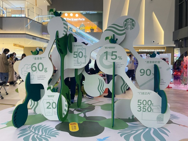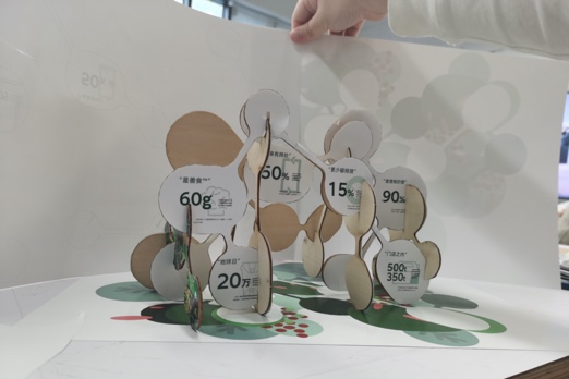 作品以相互联系的造型,表达出共生互联的状态,希望引起参观者对可持续生活方式的注意,传达出星巴克对于咖啡产业可持续未来的引领担当。材料使用绿色环保的彩绒板,带来亲和而又有韧性的感受,正如大自然本身。