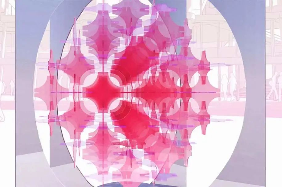 透明的材质与内深外浅的色彩使得巨大的球体在视觉上精巧而轻透