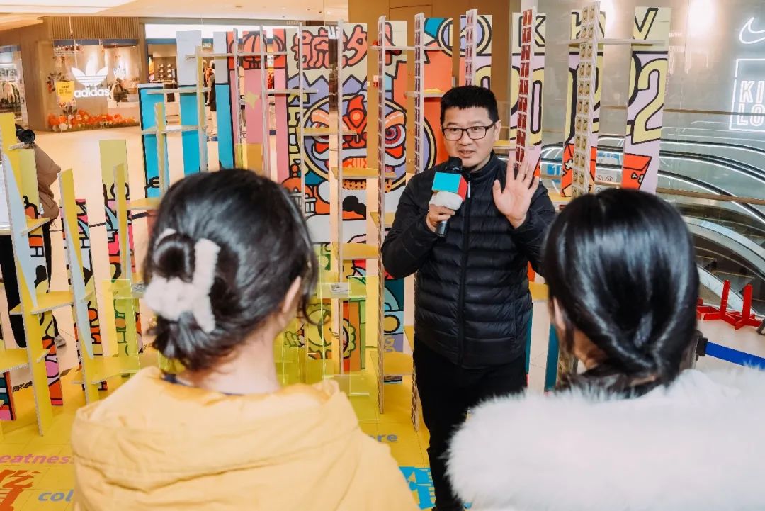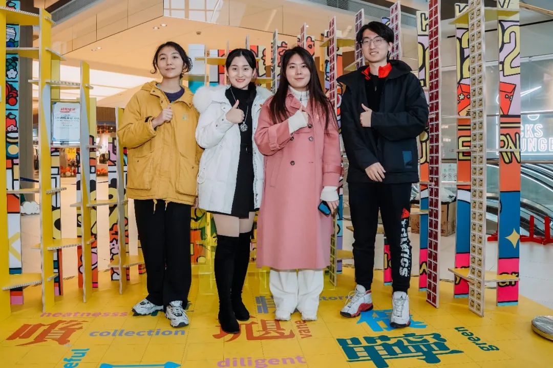 来自2020级环境设计的同学们分为六组,各自选择一个LaLaport上海金桥的商业品牌作为设计对象,针对该品牌设计占地面积不超过四平方米的展陈装置,完成品牌传递、产品展示、塑造体验、营造社群等功能。并选择适合的材料、结构方式、制作工艺将设计搭建完成,在2021年12月30日正式向公众展示。