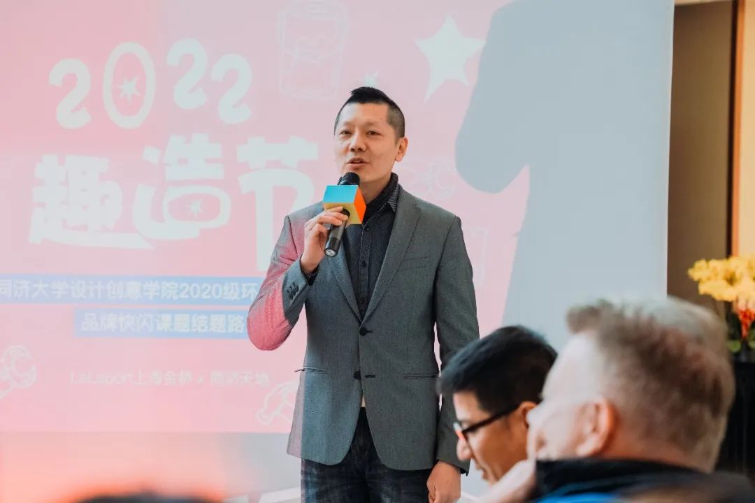 来自2020级环境设计的同学们、学院领导、本次课程的主讲教师团队、与本次实践课程项目研究相关的企业代表及新闻媒体记者共同参加了本次路演活动。活动由同济大学设计创意学院副教授吴端主持,首先由同济大学设计创意学院讲师、上海同济天地创意设计有限公司总经理施胤,同济大学客座教师刘羽云分别对学生们送上寄语,上海井桥商业管理有限公司副总经理蚊爪宏晃进行开幕致辞,同济大学设计创意学院教授、上海国际设计创新学院副院长Jarmo Suominen,同济大学设计创意学院教授、博士生导师、创意工场主任周洪涛,商业合作伙伴上海壹品仓软件科技有限公司CEO何传华,材料合作商代表上海彩滨实业发展有限公司总经理高千钧分别对同学们的课程成果进行了点评。