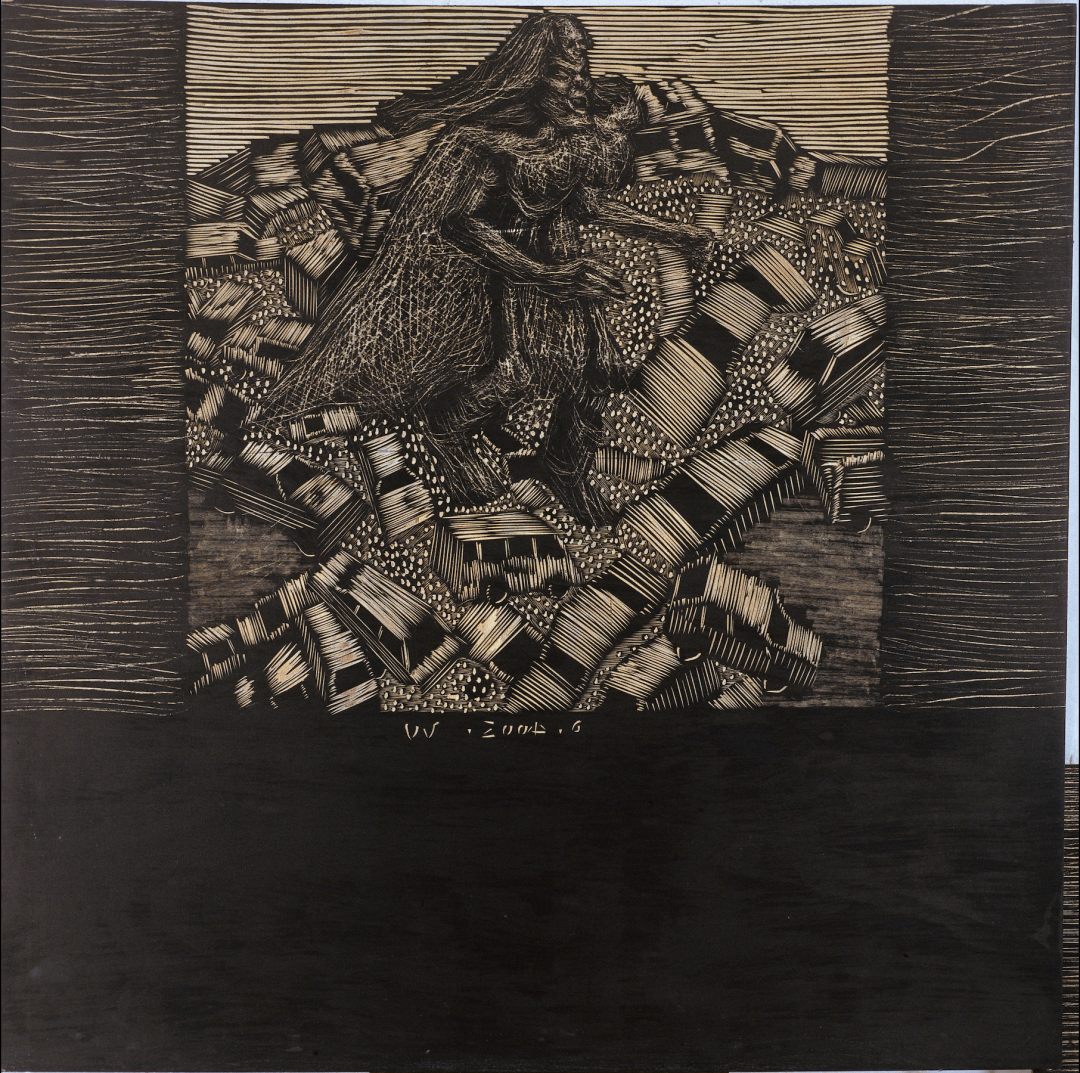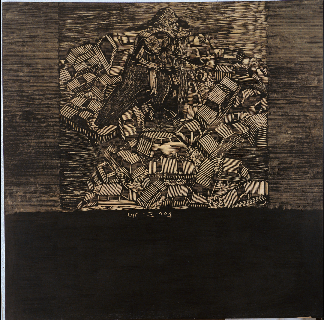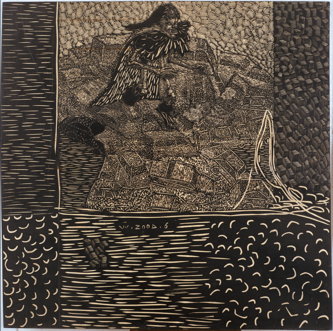 ▲ 《城市幽灵 Urban Cars》,92x92cm ,黑白木刻,2004