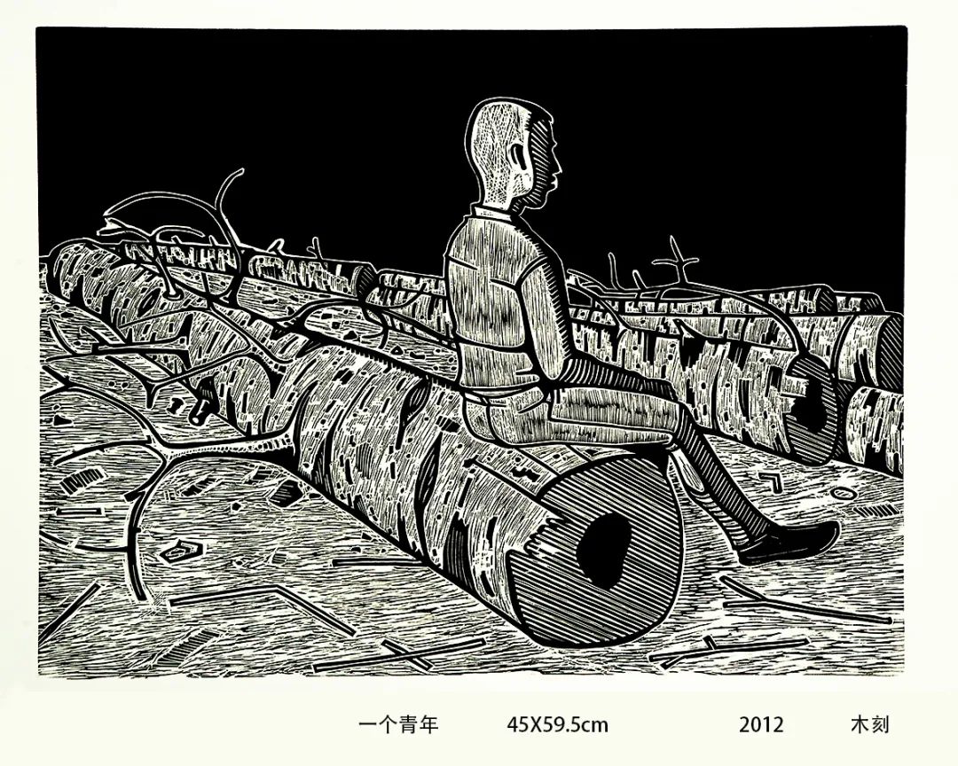 ▲ 《一个青年》,45x59.5cm,木刻,2012