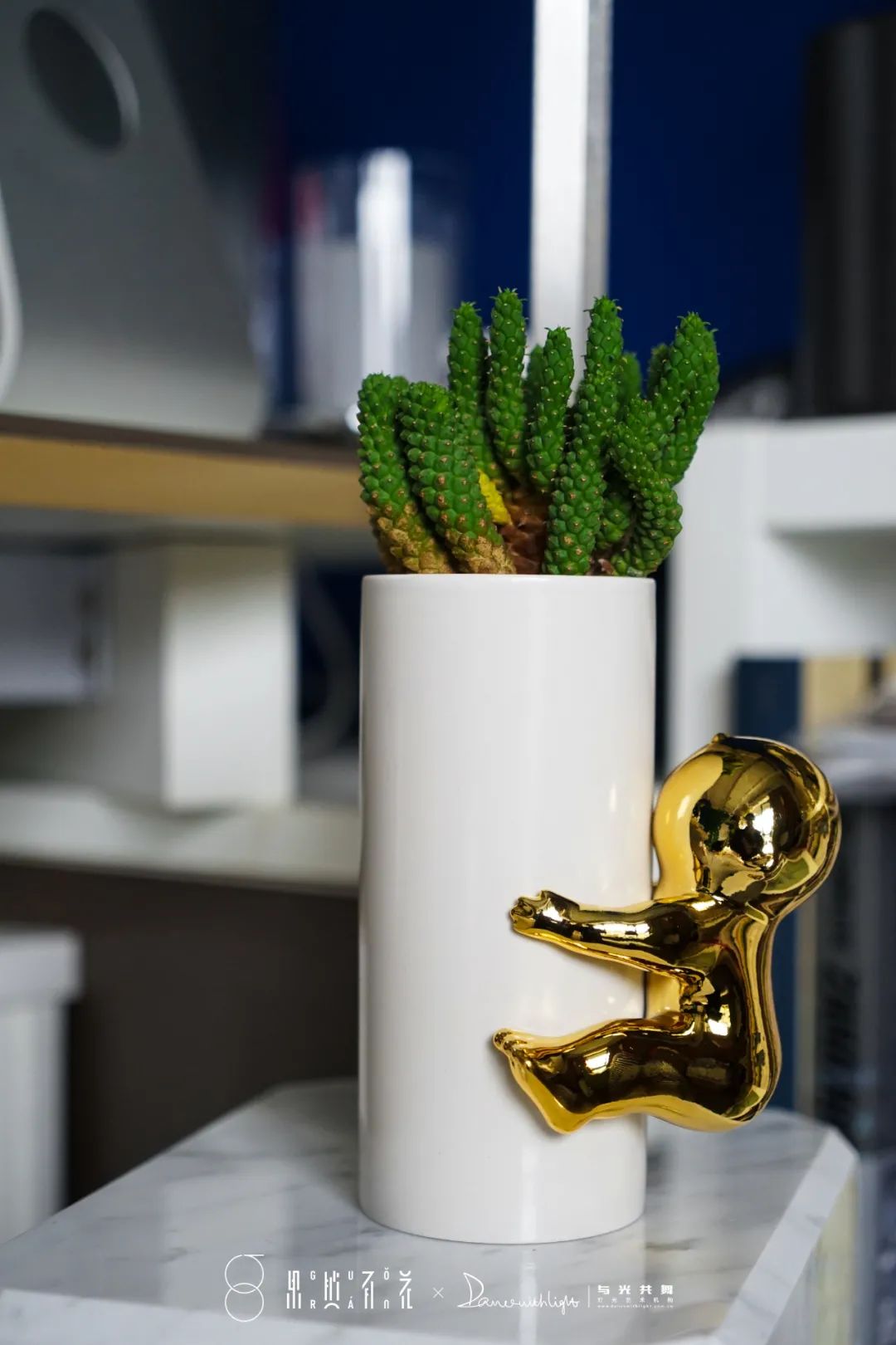 光头仔系列花植艺术「你只有拥抱了才会看见」/白+金