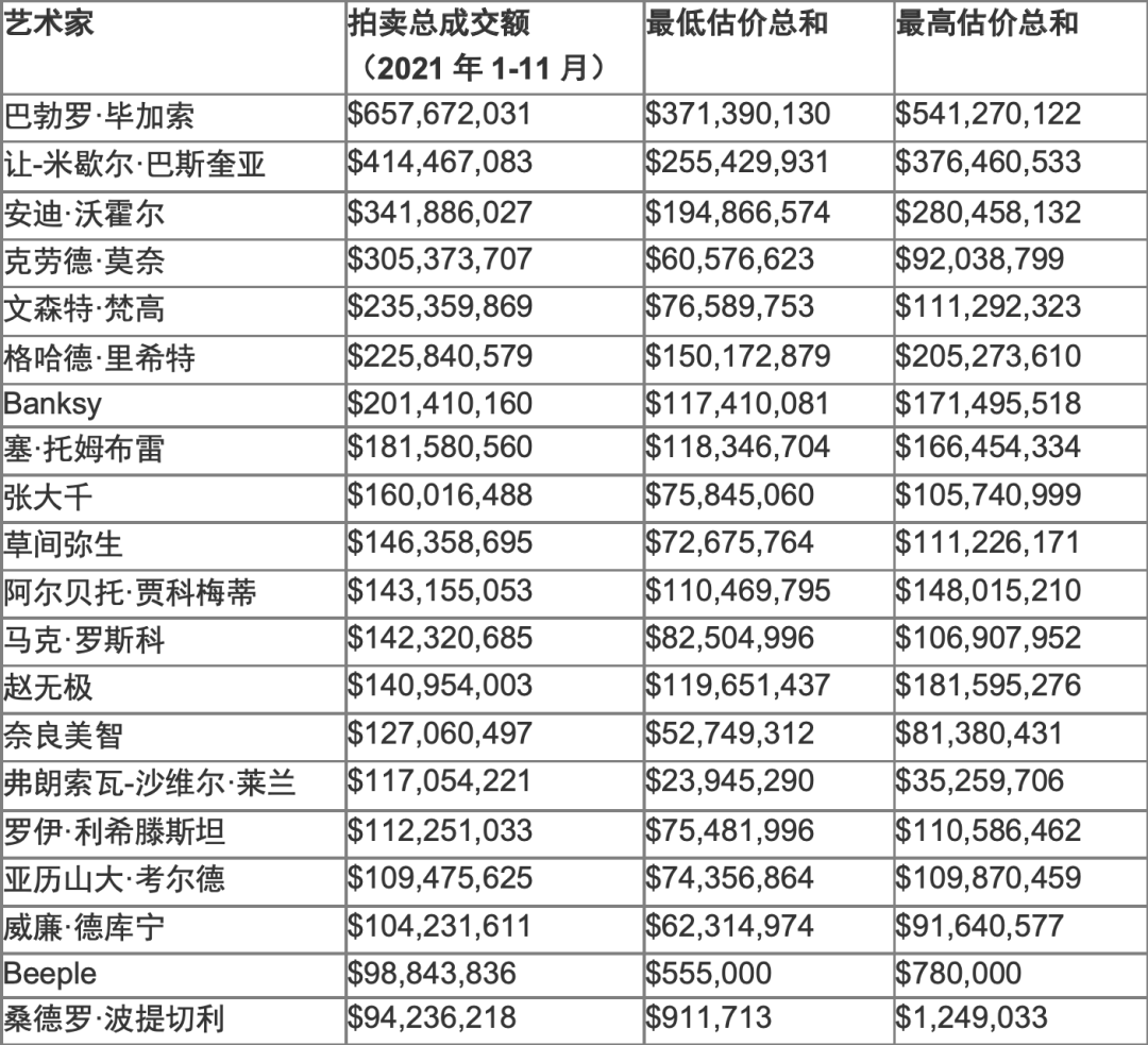 - 2021拍场总结:全球艺术家中究竟谁最卖座?