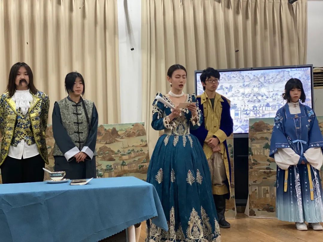 “史以物凭”结课剧目演出是设计史课程经过教学改革后衍生出的具有特色的结课形式之一。本轮演出中,四组学生分别沿着14—19世纪海上丝绸之路,探寻设计史上的中西交流,在器物生产、审美习惯、思想文化等方面进行跨时空对话。学生们根据设计史实合理改编并撰写剧本,通过排演剧目来生动立体地展现设计故事,并亲手制作相关舞美道具。这种剧目演出的形式突破了静态的教学展示,转向动态的交流模式,使得课程真正达到了灵活贯通、学以致用的目的。通过剧目演出这种综合的艺术表现形式,学生系统性地学习并掌握了设计器物、设计事件、设计思想、设计人物等多重要素的整体性的研究方法和路径,取得了良好的教学效果。目前,“史以物凭”结课剧目演出已经成功举办了五届,成为设计艺术学系的品牌活动。