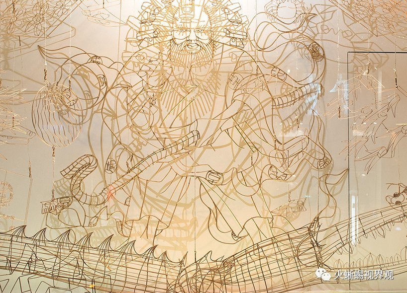 中庭内的作品延伸了店面窗户上的叙述。虽然外部展示主要利用扁平的竹框架,但中庭展示了《山海经》木刻的三维诠释。这些造型从天花板上悬挂下来,人们可以从多个角度观看到这些大型的竹子和纸制品,它们将原始的中国神话形式带到了当地人们的生活中。