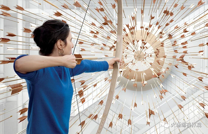 法国女性视觉艺术家和雕刻家Prune Nourry为Le Bon Marché(乐蓬马歇百货公司)设计了一个具有纪念意义的装置,该装置取材于希腊神话中的亚马逊女战士,这些女性为了成为更好的弓箭手,会割下自己的右乳房。在商店的中央玻璃顶棚下,Prune Nourry安装了888支飞行的箭和一个巨大的、令人联想的形状的弓,所有指向的胸部形状的目标靶,直径有四米。