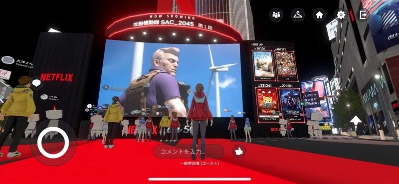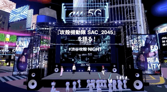 在“虚拟涉谷”开幕的当天,在涩谷著名的十字路口前,举办了攻壳机动队粉丝活动。许多人化身虚拟头像,站在台下观看开幕仪式,时不时发出欢呼声,与其他人互动。