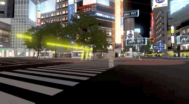 标志性的十字路口、街上的连锁药妆店、城市天际线上优衣库与 H&M 的硕大广告牌、建筑外立面上的闪烁灯箱……我们所熟悉的涩谷景观被完全搬运到了虚拟世界。