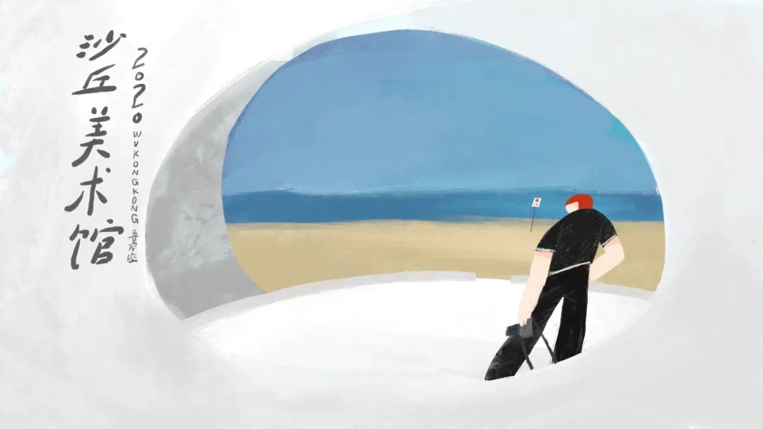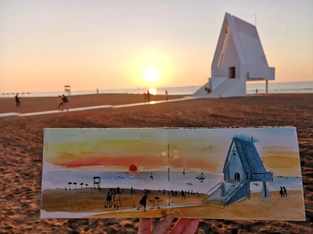 这次本来有个小遗憾,沙丘美术馆当时在布展,没有开放,我就爬到上面去,很惊喜地发现了圆形的观景台。穿过窗户看到大海时,我在想,自己如果站在窗那边是什么样的体验,就有把红头发、椭圆脑袋的小人画过去了,那是我的个人形象,站在窗前刚刚好。