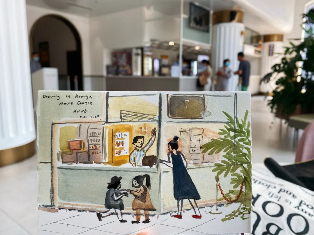 在阿那亚,总是有可以放空的柔软角落。这是我在食堂、电影院画的小画