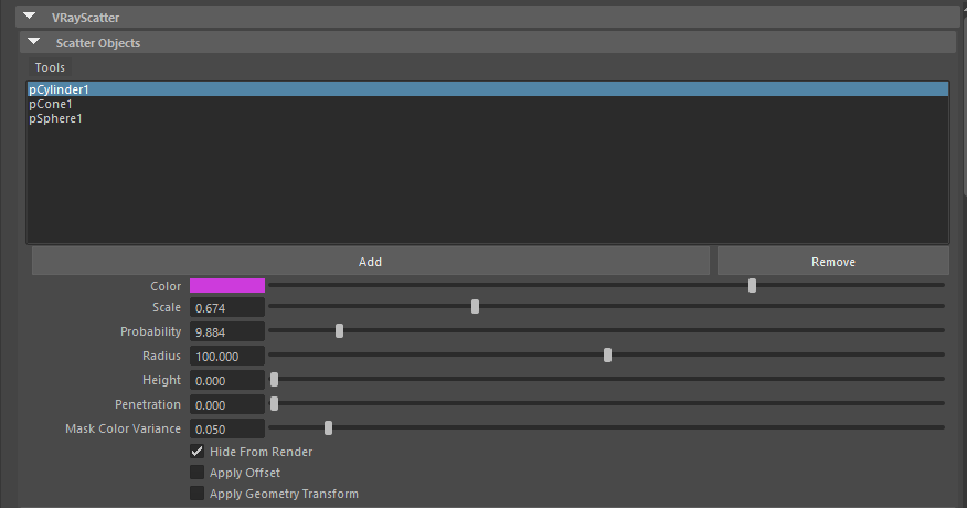 4. 选择要分布的对象(Mesh或VRayProxy),然后选择VRayScatter并在Scatter Objects卷展栏中按Add。这会将对象连接到ScatterObject属性。