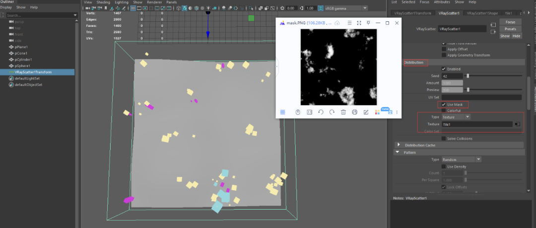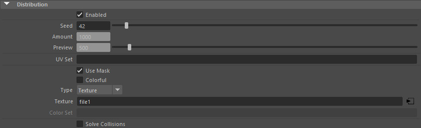 Texture:分布蒙版纹理。这可以是任何Maya纹理。