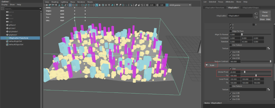 本文会基于我常用的命令以及官方给到的文档去简单介绍VRay Scatter在Maya中的基础用法。文章末尾会贴出官方文档路径。