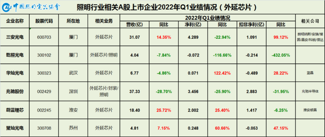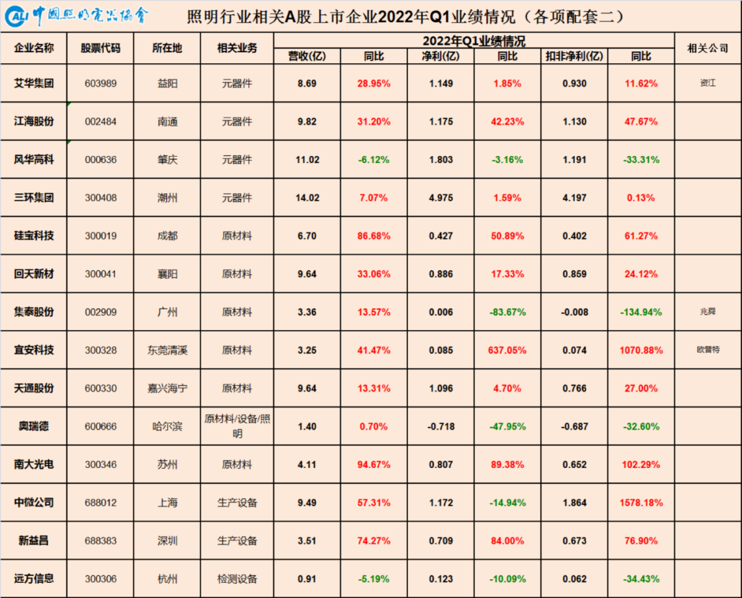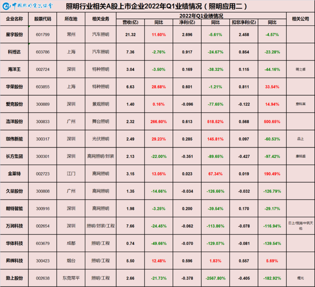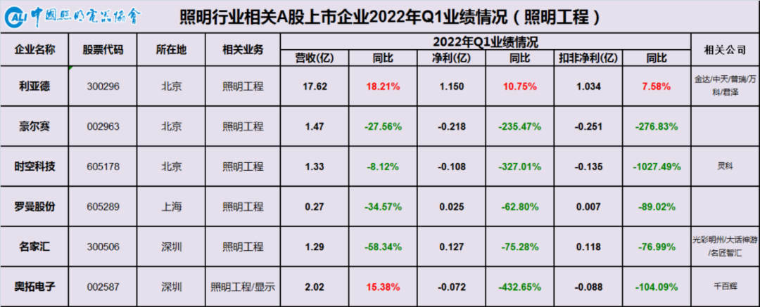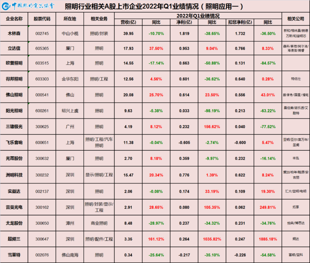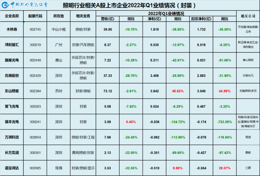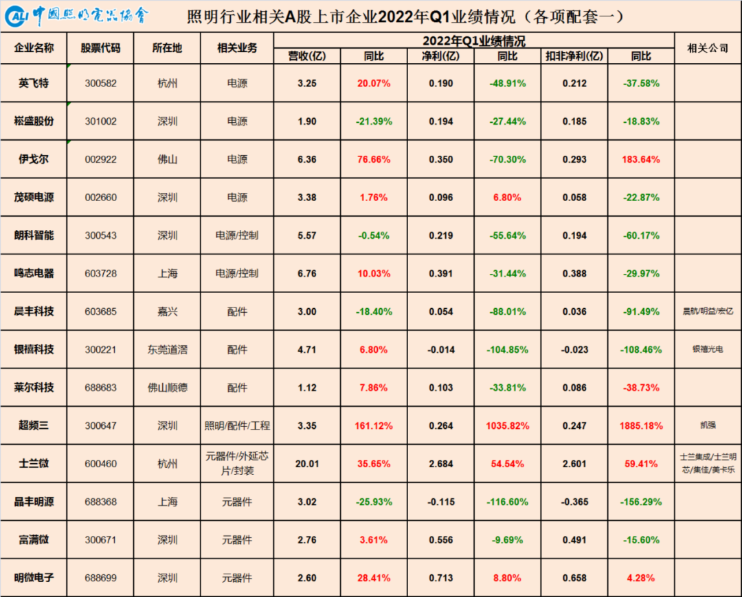从2022年一季度各上市公司业绩总览可以看出,今年开年全行业就面临了严峻挑战。多个板块都遭遇了不同程度的业绩下滑,其中照明封装类企业一季度营收利润普遍下滑,照明工程类企业一季度利润下滑幅度最大。