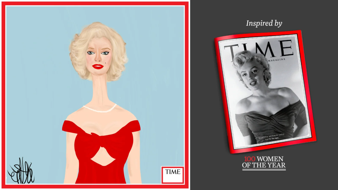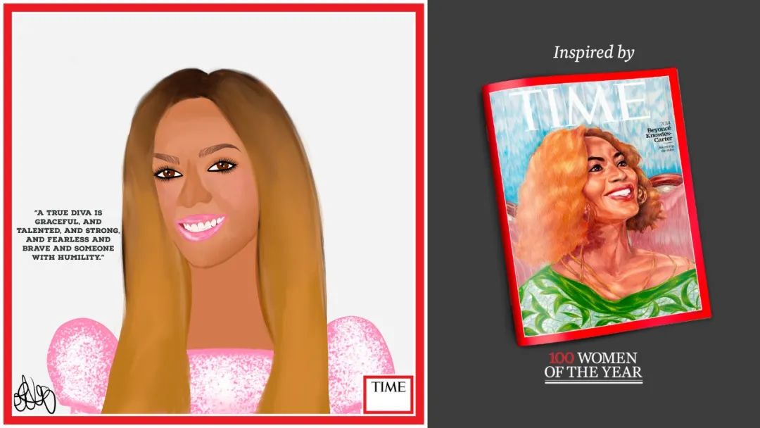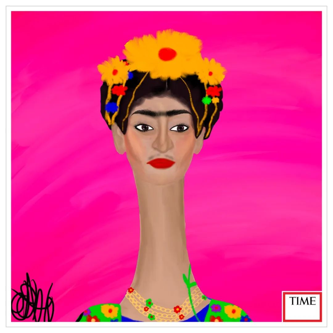 《时代》杂志与尼拉的这次合作主题,是将往期的 100 位年度女性用《Long Neckie Ladies(长颈女士)》的风格进行重绘,并且要为每位开发单独的 10 套边框背景套件,合计为 1000 幅画作,这些年度女性包含了可可香奈儿、屠呦呦、戴安娜、麦当娜、碧昂丝等众多知名人士!
