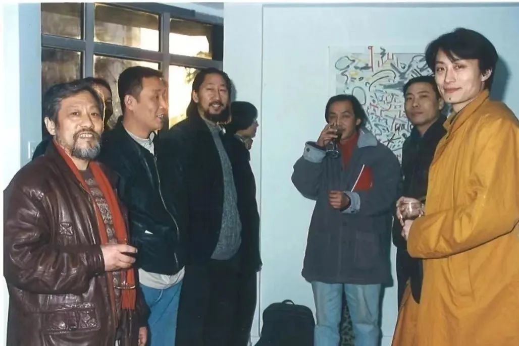 ▲ 与栗宪庭、顾德新、王广义、刘炜等朋友在中央美术学院画廊博纳法展览开幕现场,1997