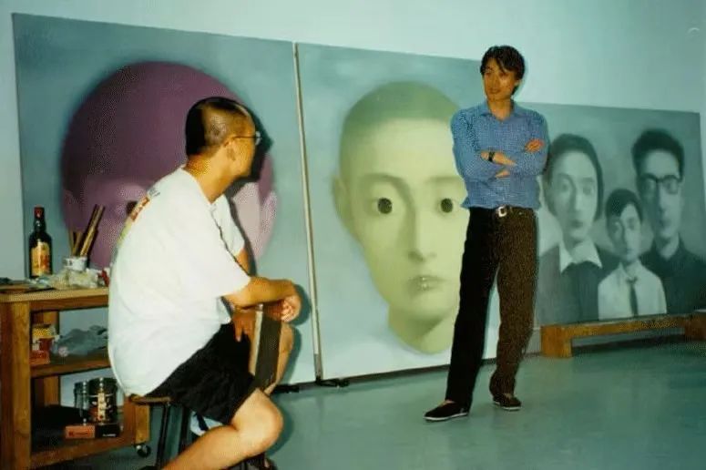▲ 程昕东在四川成都张晓刚工作室,1999