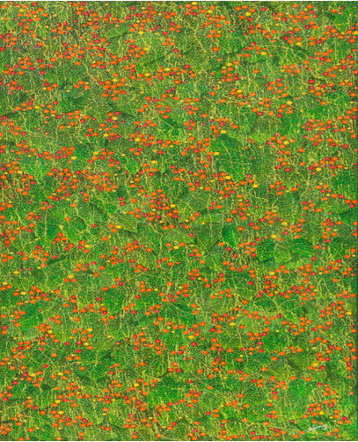 ▲ 张向明,《花朵⼉系列》,布⾯油画,直径:120 cm,2020