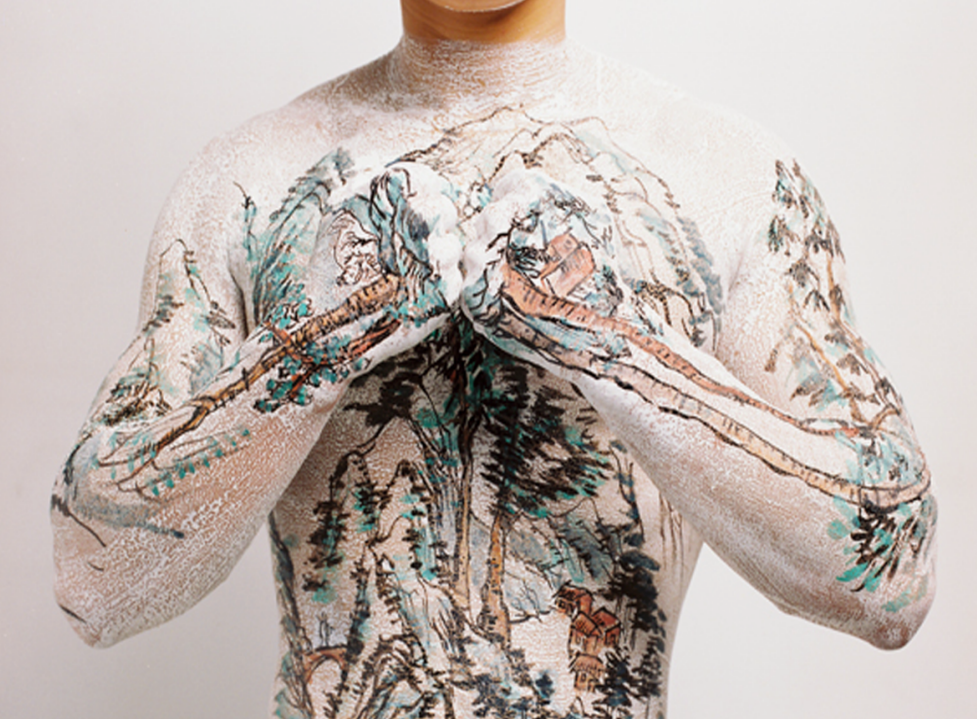 ▲ ⻩岩,《中国⼭⽔纹⾝》,摄影图⽚,45 x 60 cm,1999