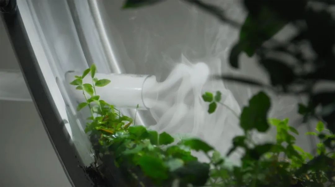 观众将看到他们的行为如何与装置关联:他们的数据使用被追溯,他们的碳足迹被计算并转化为二氧化碳,这些二氧化碳转化为烟雾,被吹入一个活生生的生物群落中。