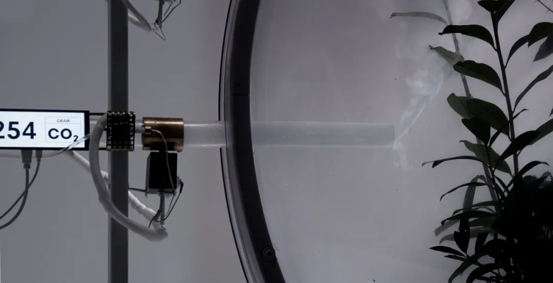 当人们对装置进行视频通话、播放 Netflix 剧集或出售 NFT 时,球形生物群落中充满了二氧化碳,揭示了小规模的生态影响。