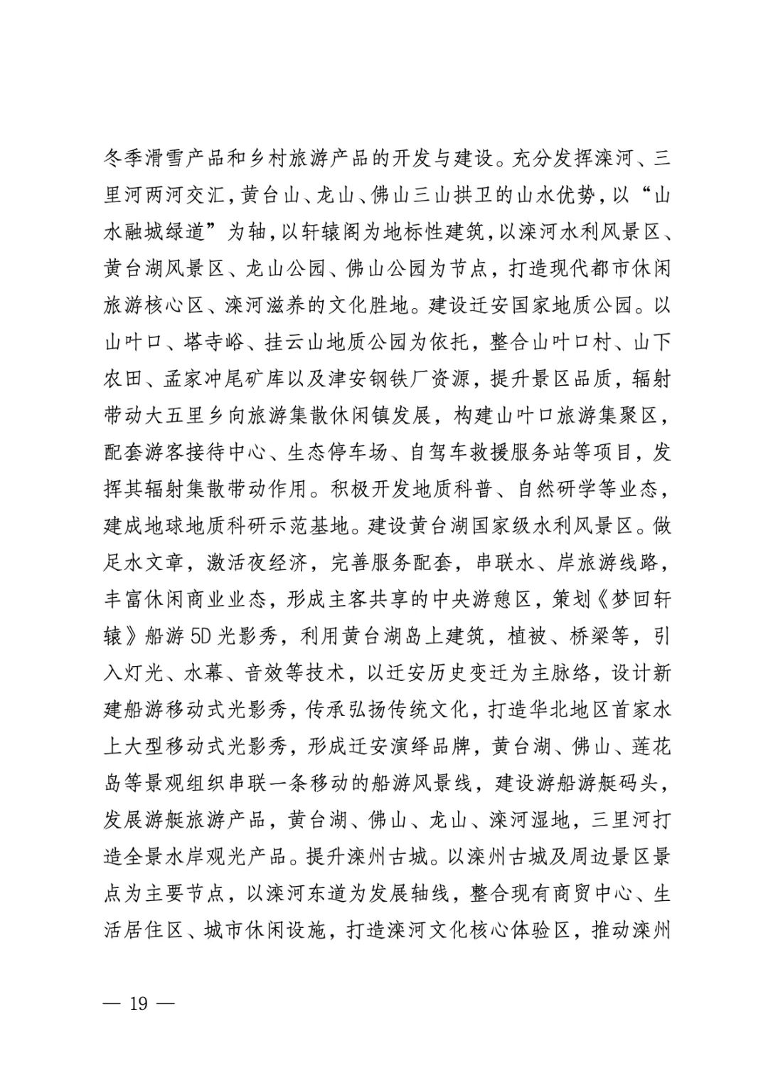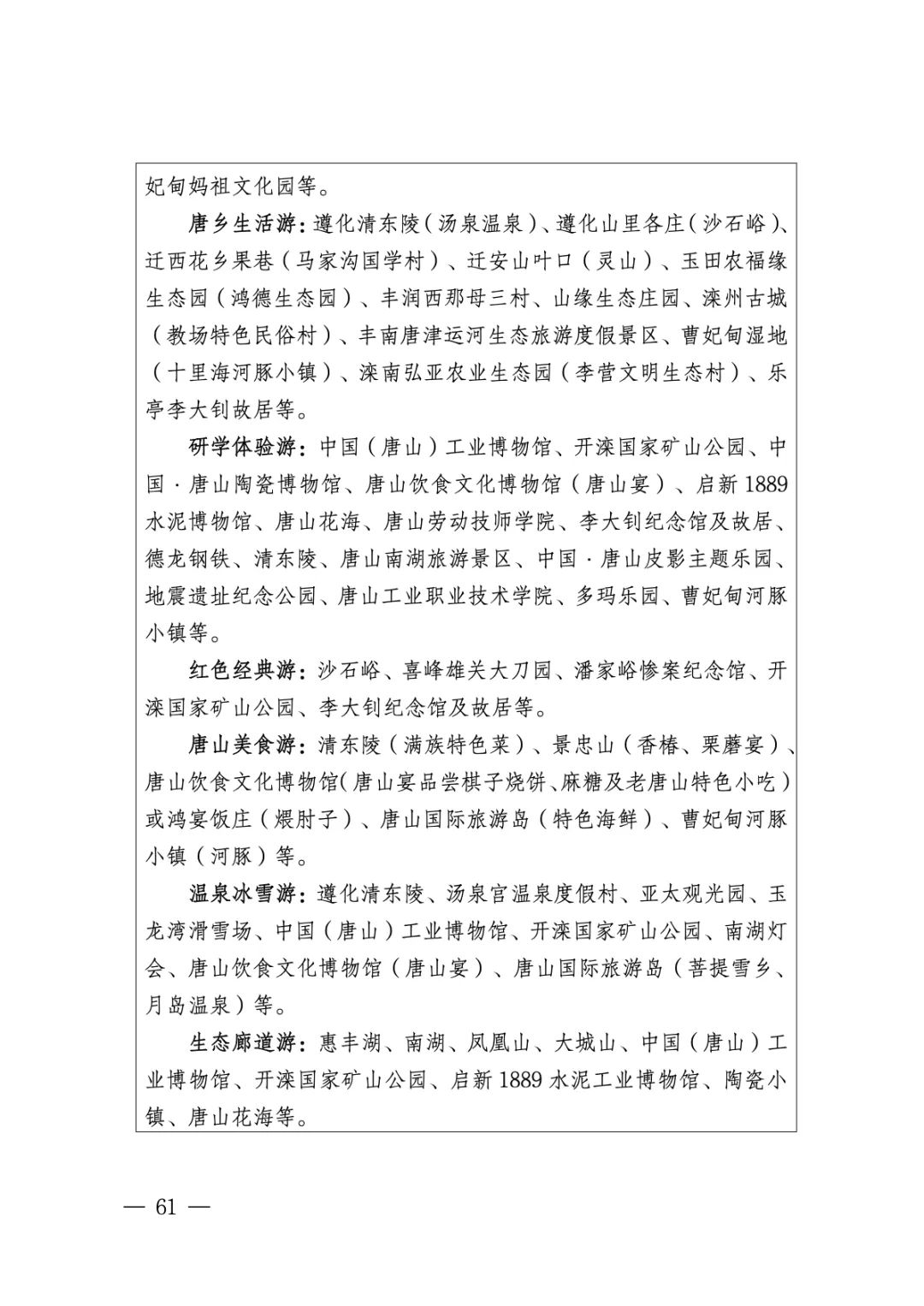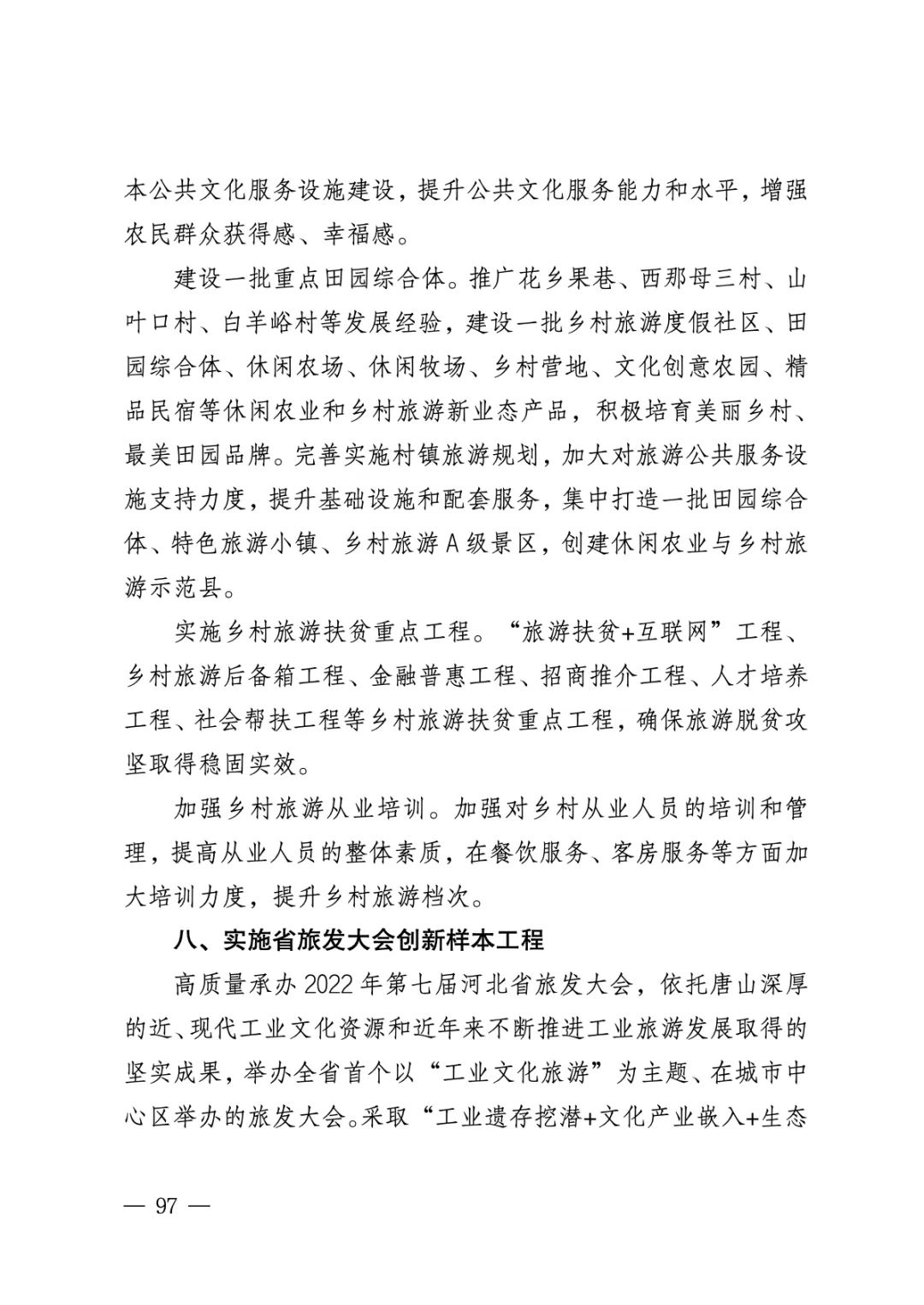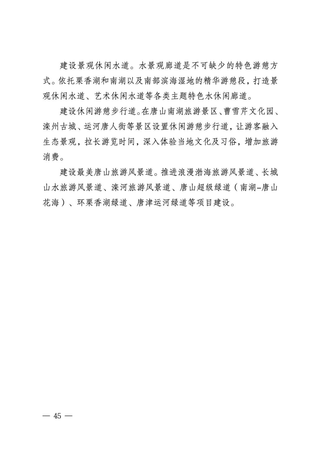 建设皇家山水旅游聚集区、长城文化旅游聚集区、运河文化旅游旅游聚集区、乡村休闲度假聚集区、生态修复展示聚集区、海岛休闲度假旅游聚集区、湿地生态体验旅游聚集区等七大文旅集聚区。