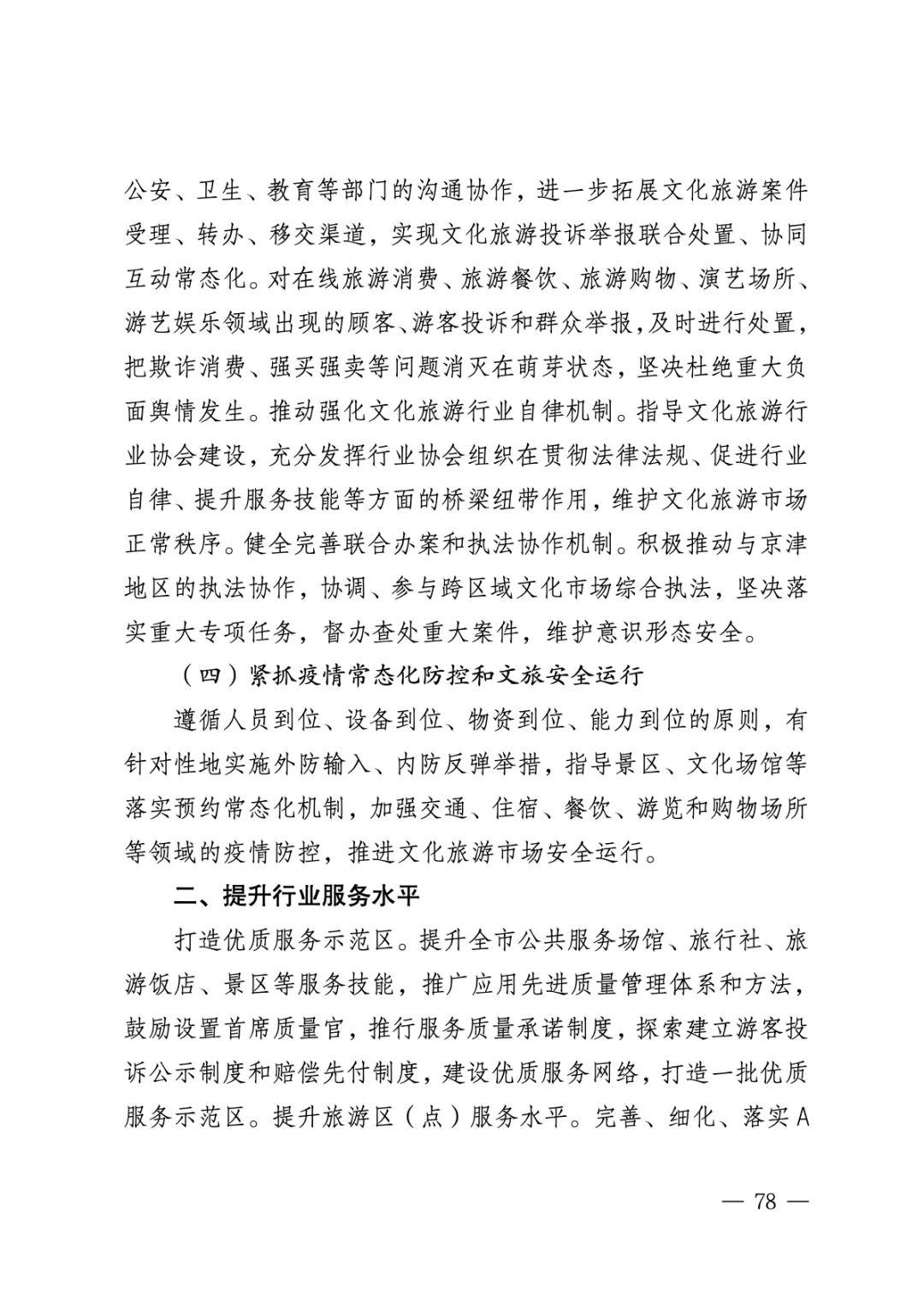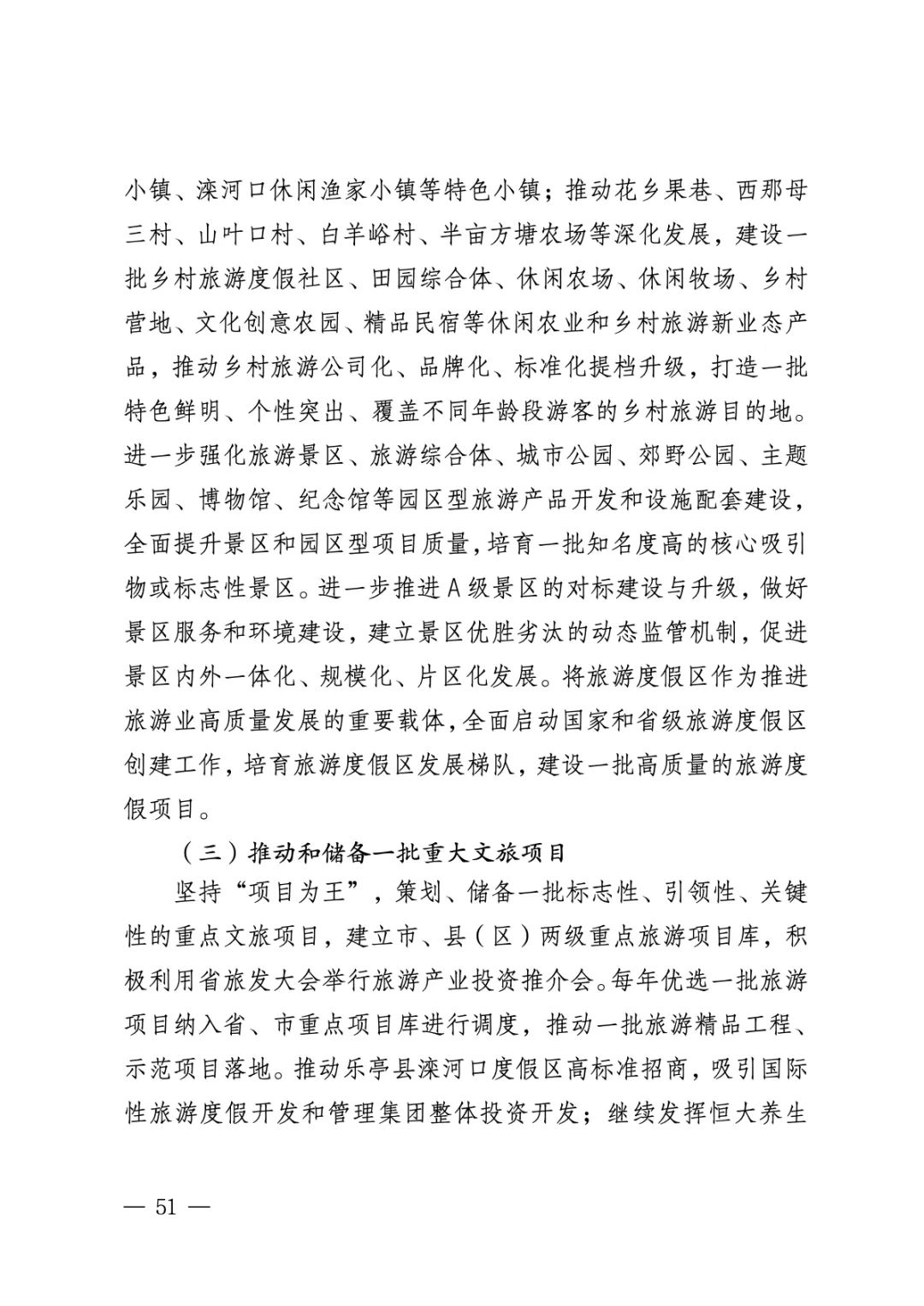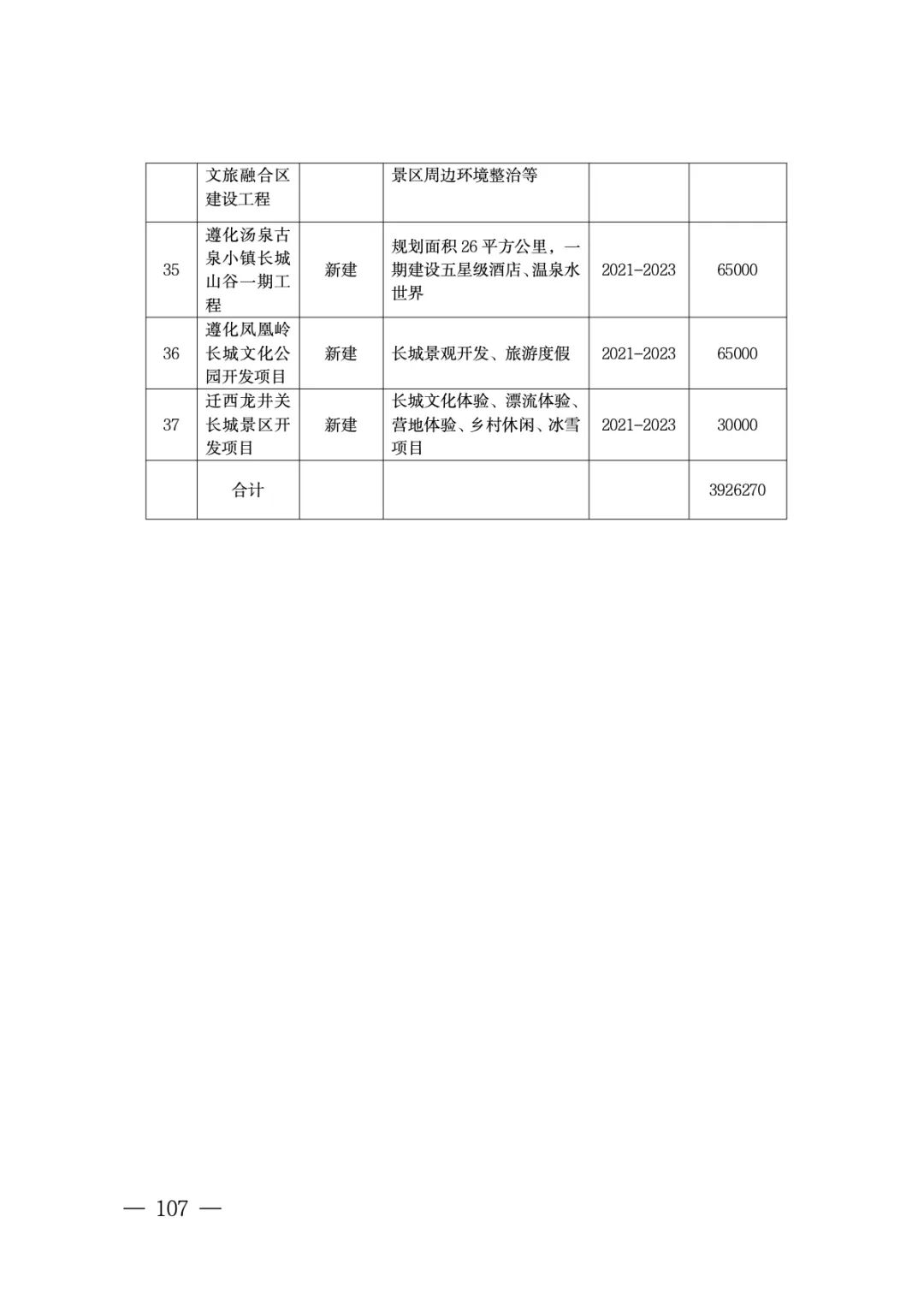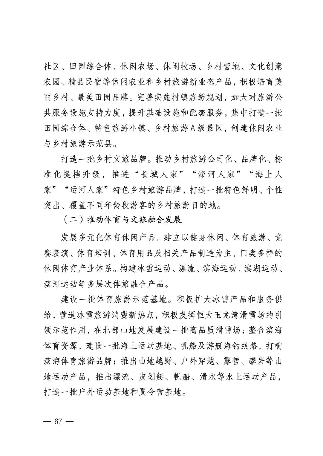 建设皇家山水旅游聚集区、长城文化旅游聚集区、运河文化旅游旅游聚集区、乡村休闲度假聚集区、生态修复展示聚集区、海岛休闲度假旅游聚集区、湿地生态体验旅游聚集区等七大文旅集聚区。
