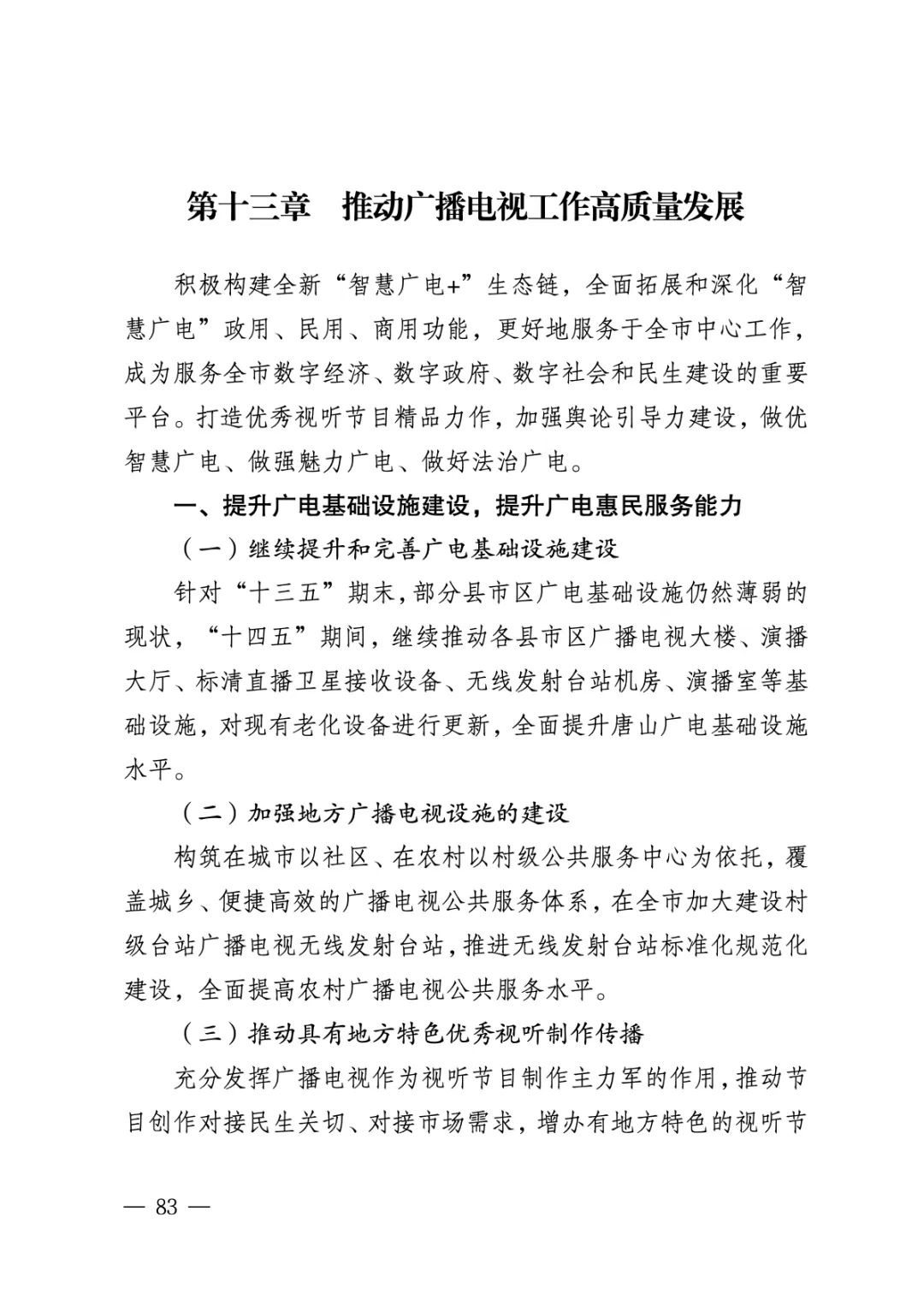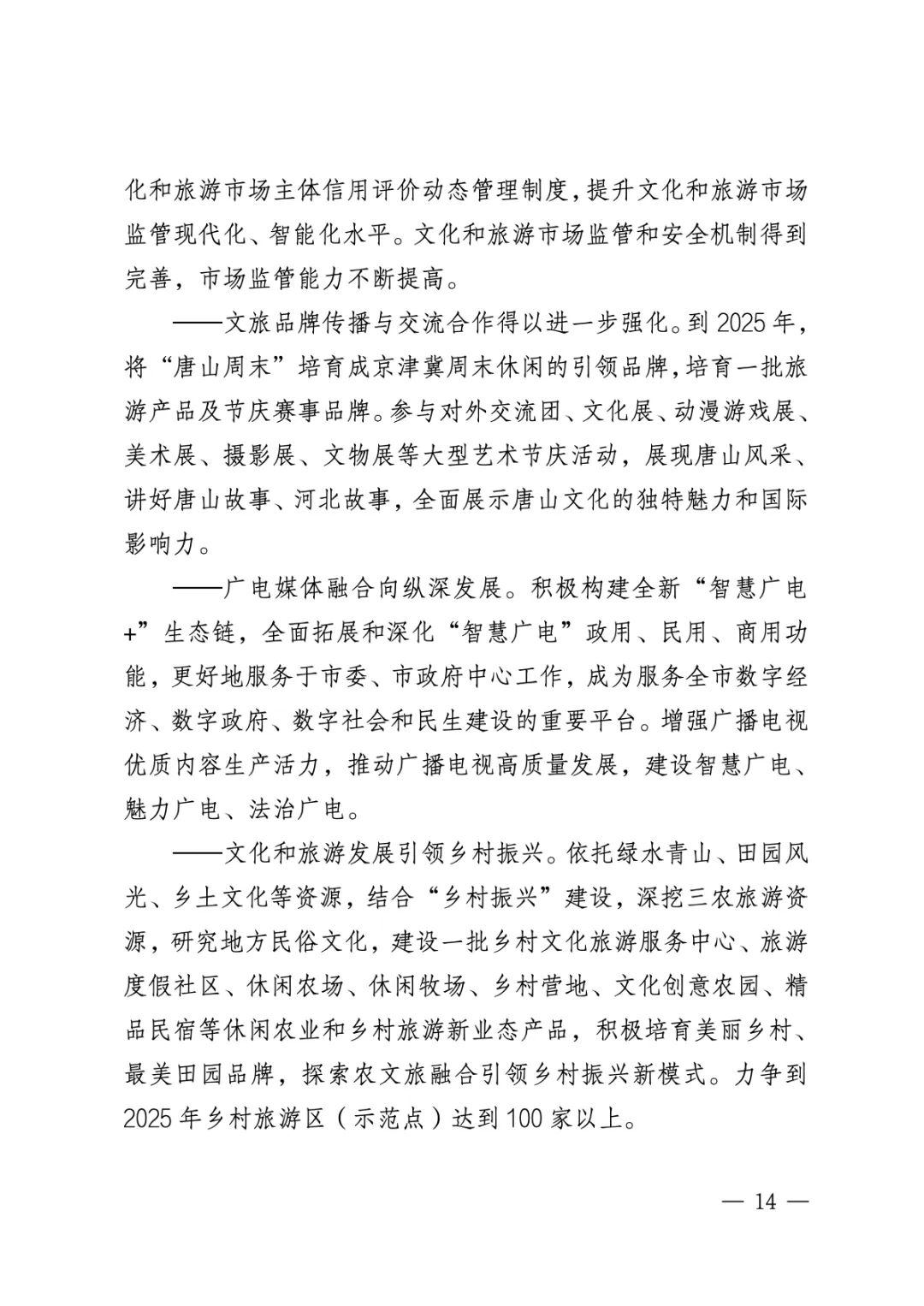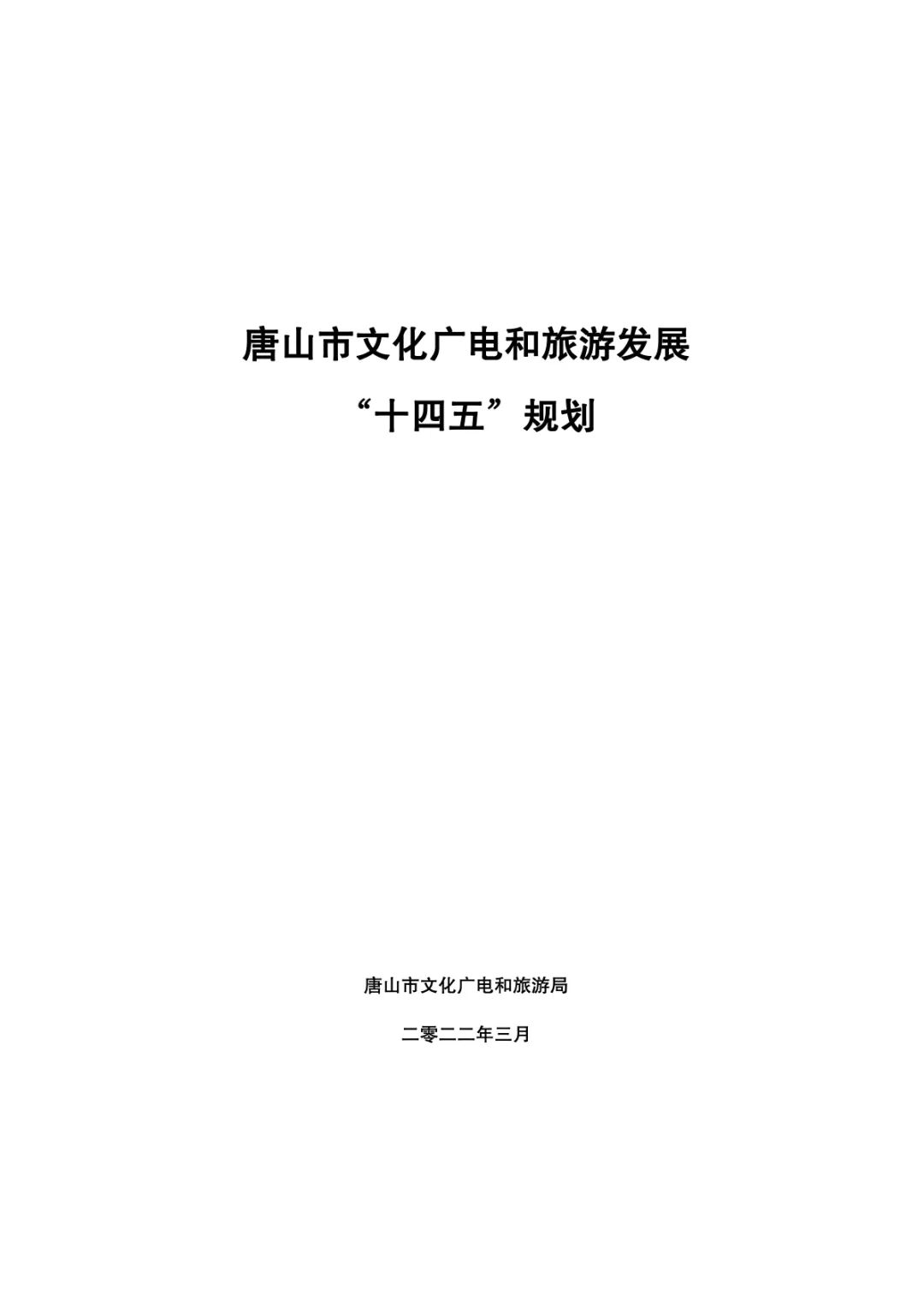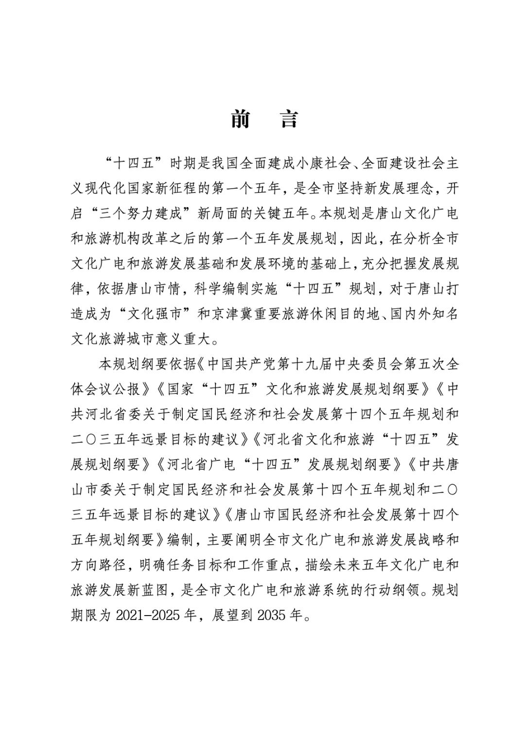 - 唐山市文化广电和旅游发展十四五规划(全文)