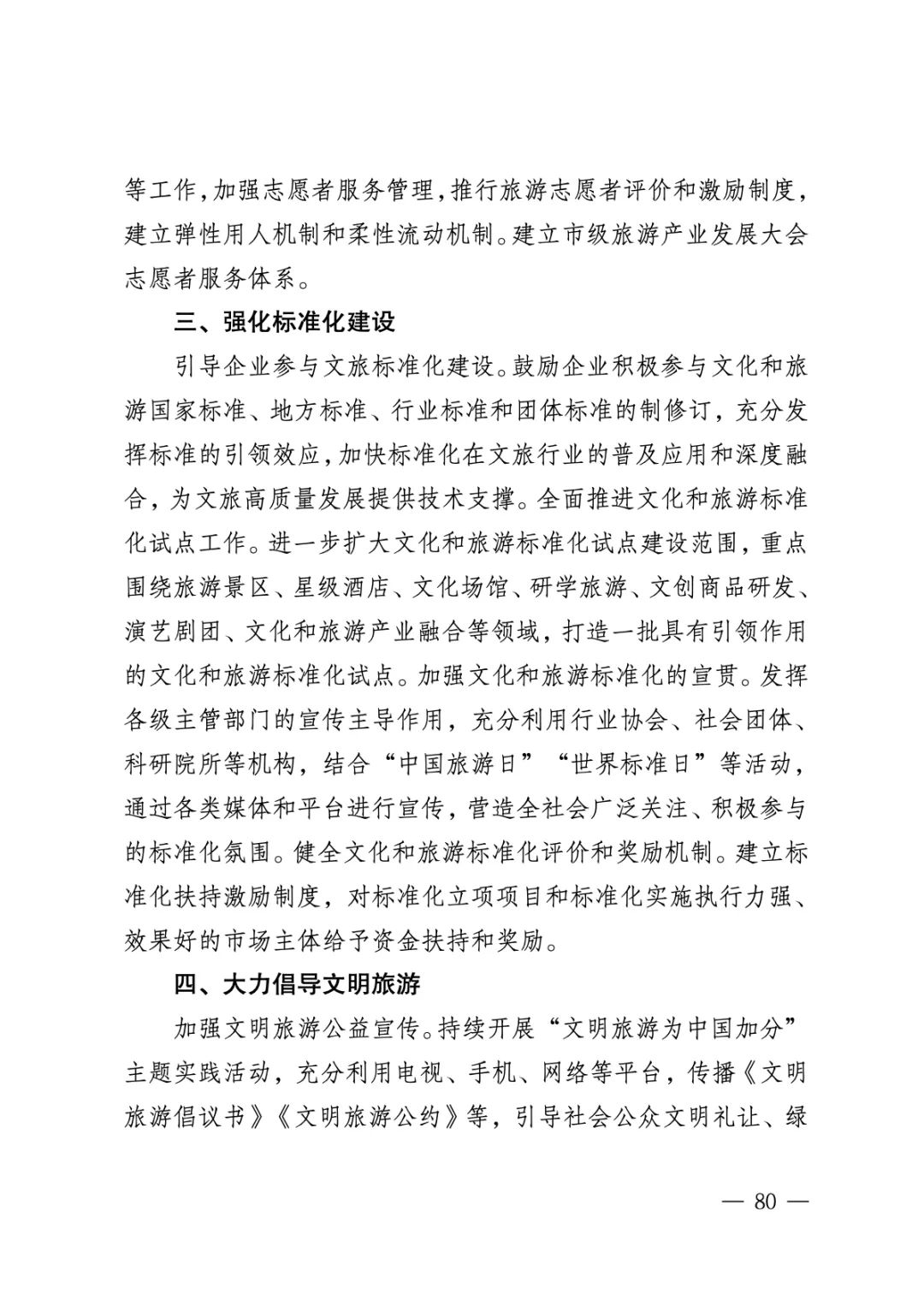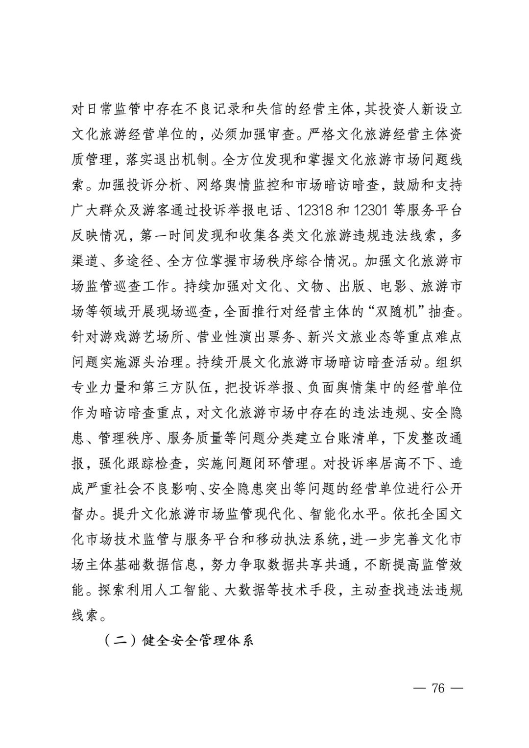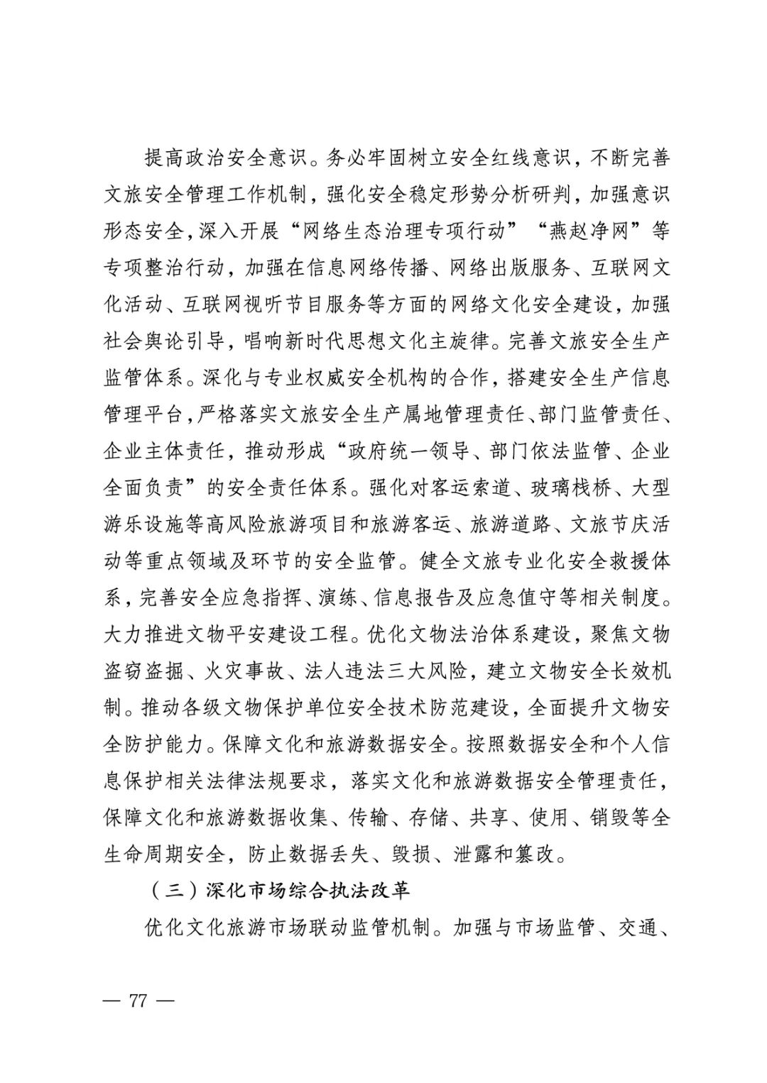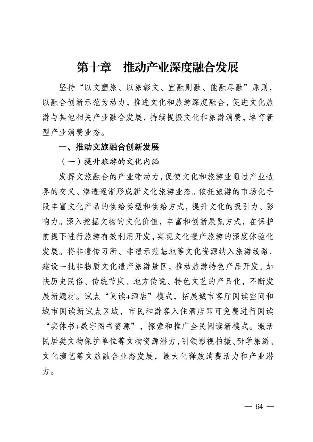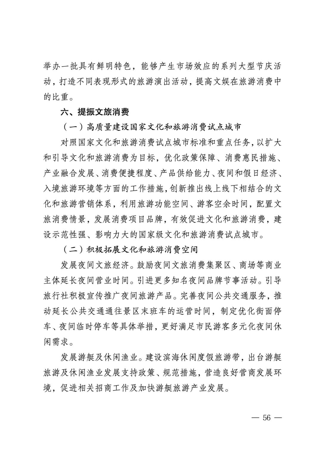 发展夜间文旅经济。鼓励夜间文旅消费集聚区、商场等商业主体延长夜间营业时间。引进更多知名夜间品牌节事活动。引导旅行社积极宣传推广夜间旅游产品。完善夜间公共交通服务,推动延长公共交通通往景区末班车的运营时间,制定优化街面停车、夜间临时停车等具体举措,更好满足市民游客多元化夜间休闲需求。