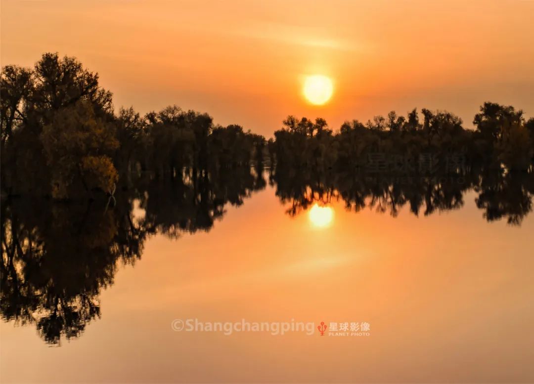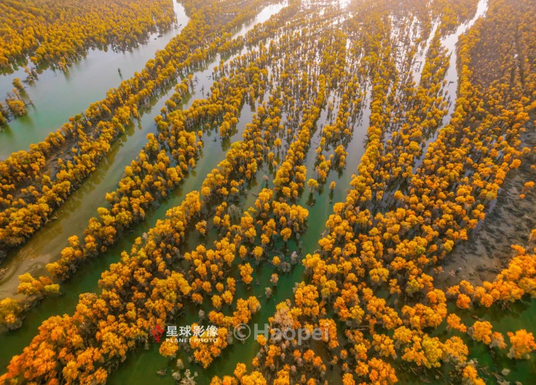 ▼ 金秋十月,沙雅县水上胡杨景观
