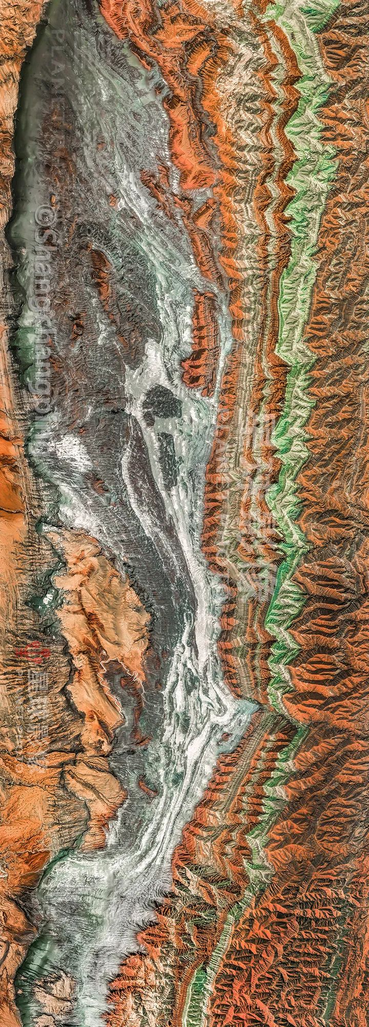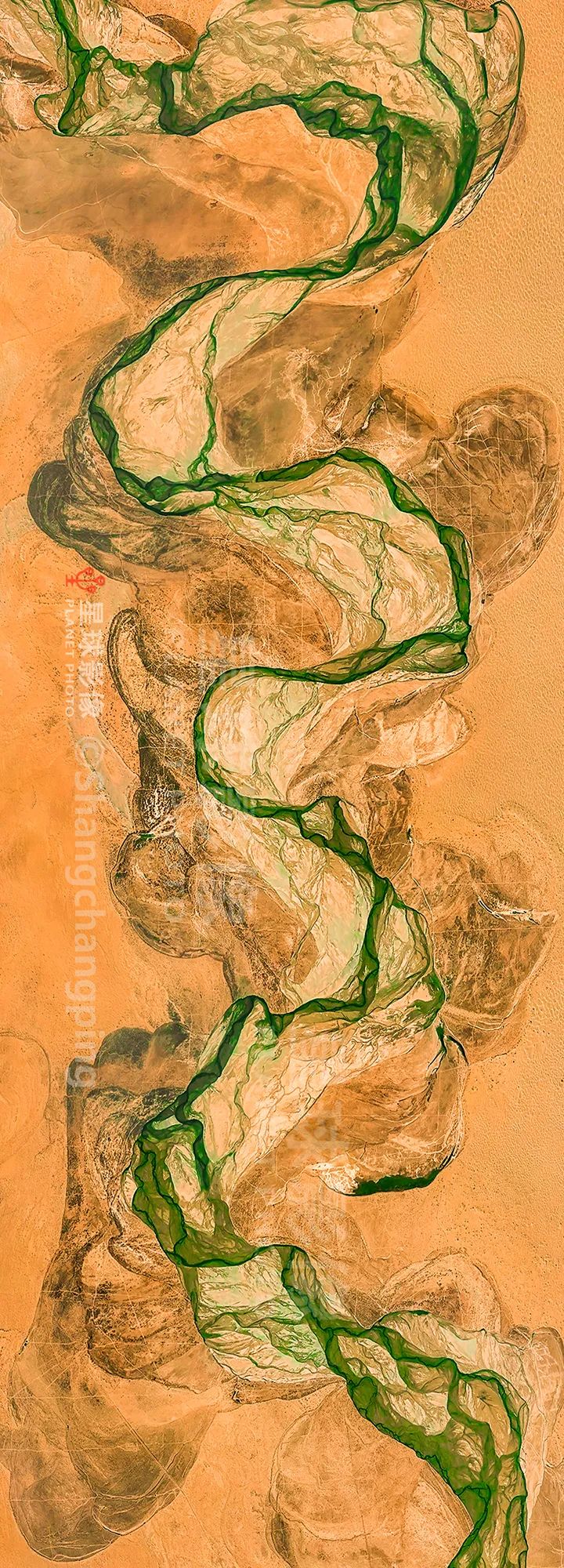 ▼ 和田河由南向北贯穿塔克拉玛干大沙漠,在丰水期入注塔里木河(请横屏观看)