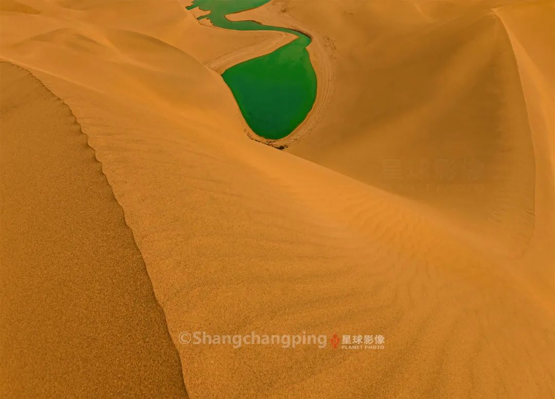 ▼ 塔克拉玛干沙漠里的河道残留湖
