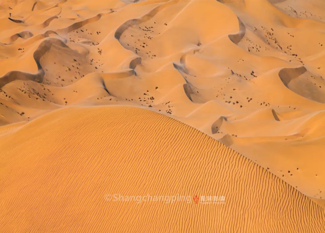 ▼ 沙尘暴过后,平静的塔克拉玛干沙漠像一块柔软的丝绸