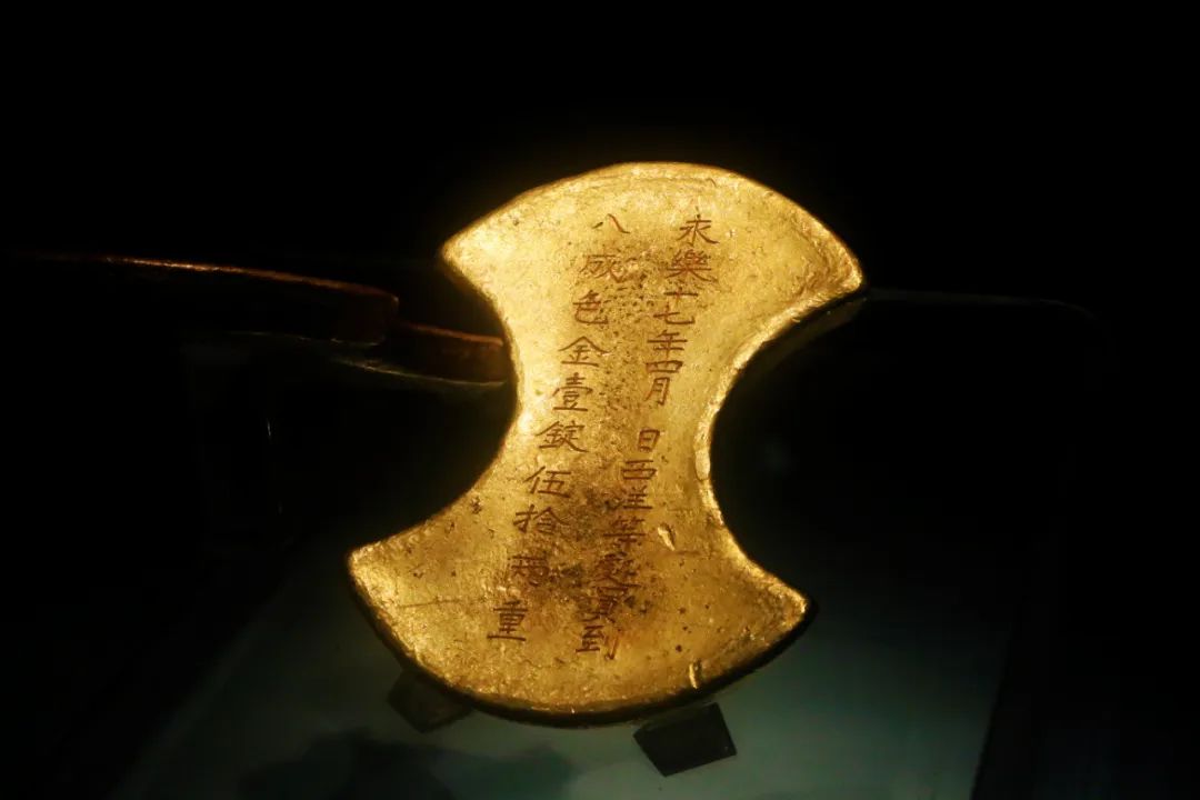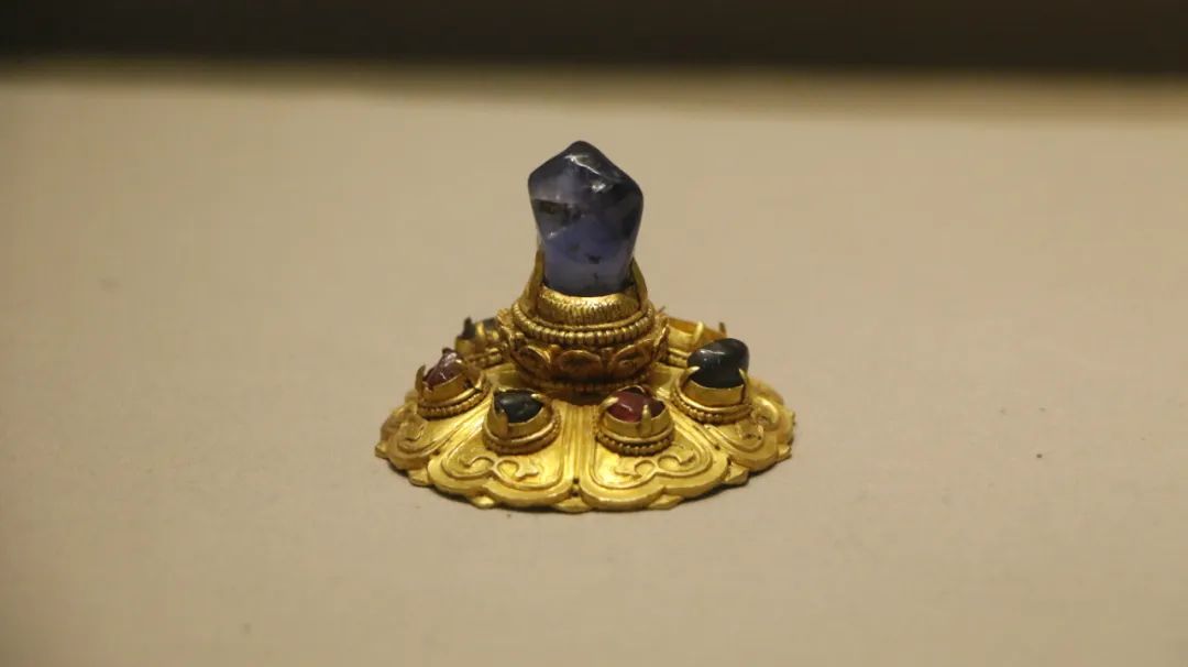 据了解,该墓出土仅金器的重量就达10余公斤,珠饰宝石则多达3400余件。文物用金量高达200公斤,用银量400公斤,用玉量800公斤。各种镶嵌的宝石有7000多颗,其中红宝石、蓝宝石、祖母绿、金绿宝石等四大名贵宝石,产地都不在国内,可能来自东南亚,可能与当时郑和下西洋有关。