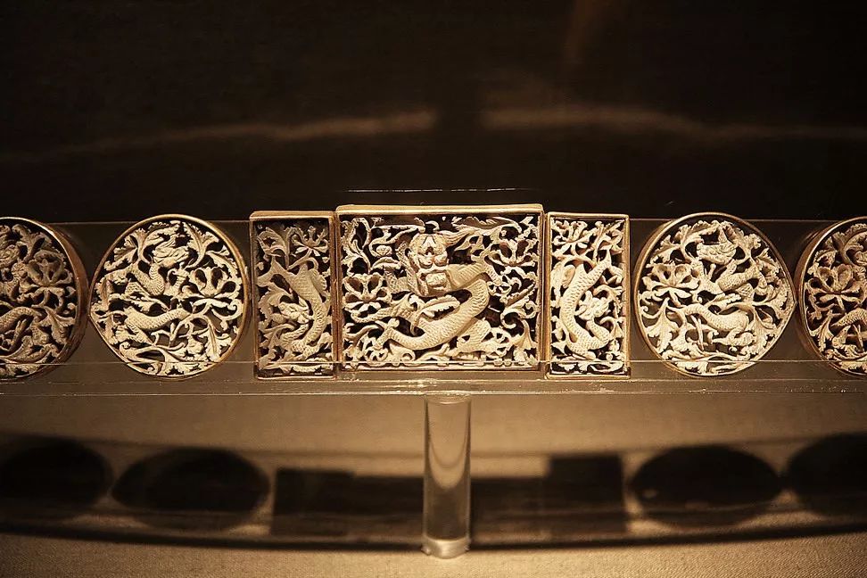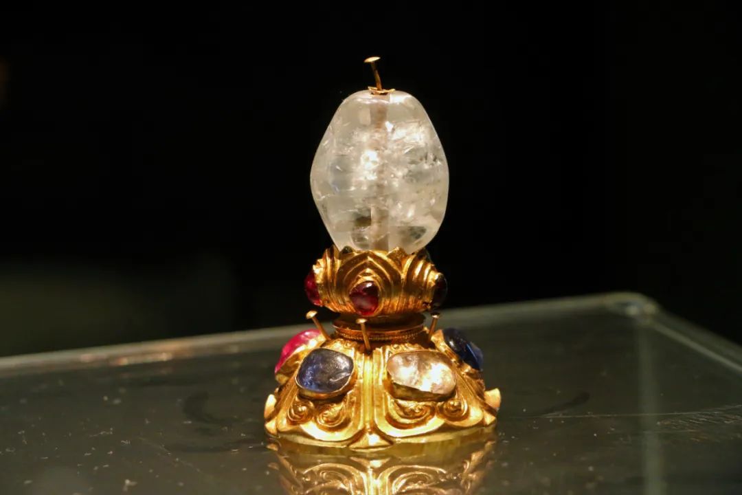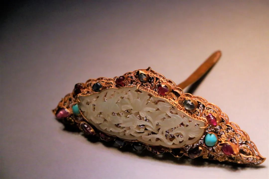 明 金镶宝石白玉镂空云龙冠顶 湖北省博物馆藏 梁庄王墓出土 图/文博圈