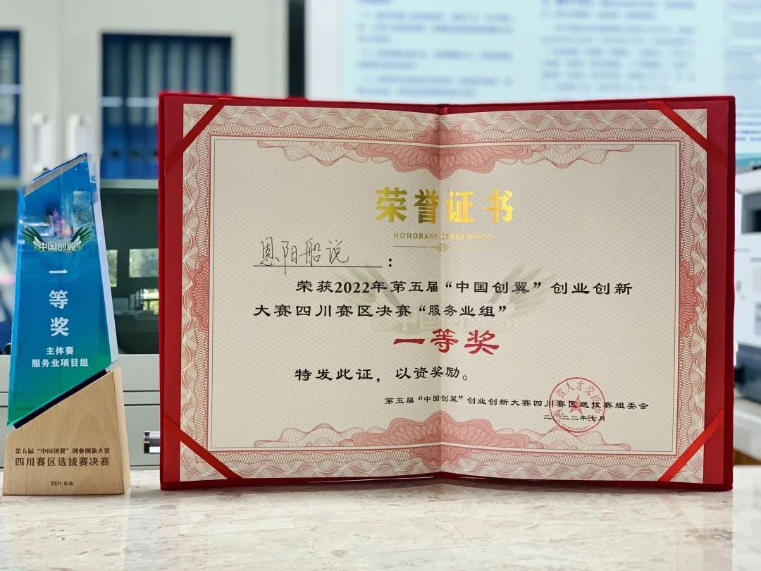 - 喜报!恩阳船说斩获第五届“中国创翼”创业创新大赛四川赛区一等奖!