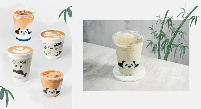 那大概是:你会在静安寺买无数次咖啡,但只有Manner的手冲咖啡是冲给你看的。大到每一家门店格调氛围的打造,小到每一类咖啡的冲泡方式,每一朵拉花的呈现,Manner的精致感赢在一种理性得体的浪漫,赢在提醒人们忙碌日子里别忘记“慢下来”的生活感。这种精致,遇上野兽派的情调,内外的温柔,融合出一种可感知的生活质感、品味和自我态度。为了更好地将自身的精致感与联名品牌在调性上的高度契合转化为大众理解的表达,Manner在与之联名的产品名称、风味和视觉设计上下了诸多巧思。这里必提的是Manenr与野兽派联名的爆款“熊猫拿铁”(现在Manner公众号的这篇推送依旧是无法转发的状态)。“熊猫拿铁”的核心卖点在于“咖啡香水CP”定位。即,将野兽派新品熊猫香水的气味嫁接到咖啡,采用野兽派熊猫香水的三段调性法描述新品的风味。然后再在视觉玩法上搞了个创新:饮品底部设有蓝色分层,搅拌后整杯咖啡就会变成竹子一般的清新淡绿色。