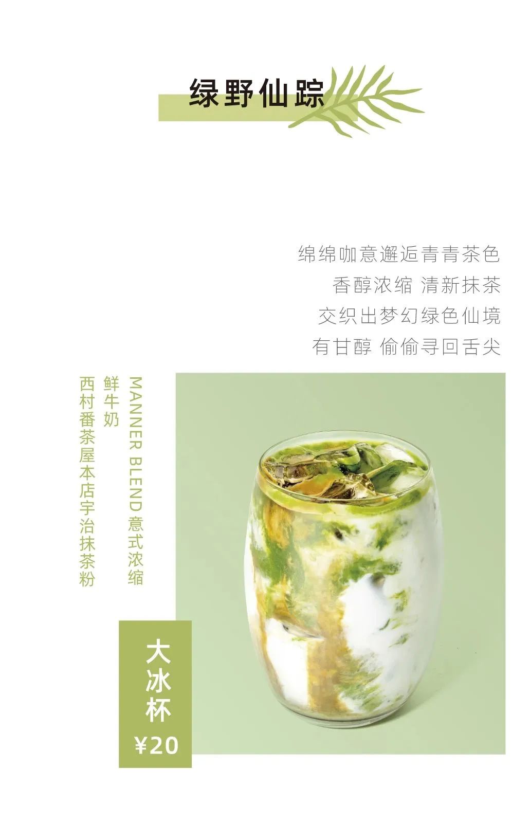 综上我们不难发现,这两次联名的共同之处是都将大众心理上对香氛气味及精致氛围感的体感想象和追求转移到了饮品上,从而完成了一场大众“精致情绪”的投射。同样,去年4月,Manner联名内外2021春夏少女系列推出的三款抹茶特调。众所周知,内外一向主张女性展现真实自我,这次联名,Manner特邀3名女性咖啡师共同探索春日生活里的琐碎,大胆展露多面自我与无关年龄的少女心,就连主推饮品名字“绿野仙踪”也满怀一腔故事与诗意。