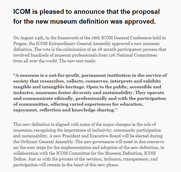 ICOM 很高兴地宣布新博物馆定义的提案获得批准。