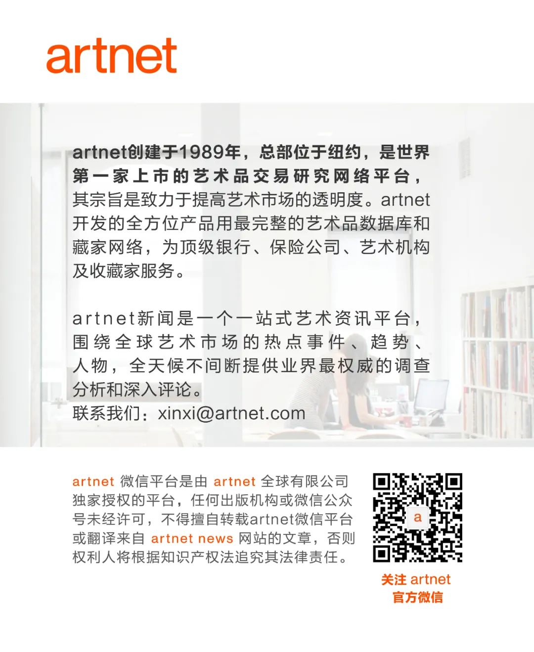 - 本内容由数艺网主动采集收录,信息来源为 “artnet资讯” 公开网络发布内容。第三方如需转载本内容,必须完整标注原作者信息及 “来源:数艺网”,严禁擅自篡改、删减或未标注来源转载。 并附上本页链接: 若您的内容不希望被数艺网收录,或认为此举侵犯了您的合法权益,敬请通过微信 ID:d-arts-cn 联系数艺网。我们将致以诚挚歉意,并第一时间为您办理下架或删除处理。