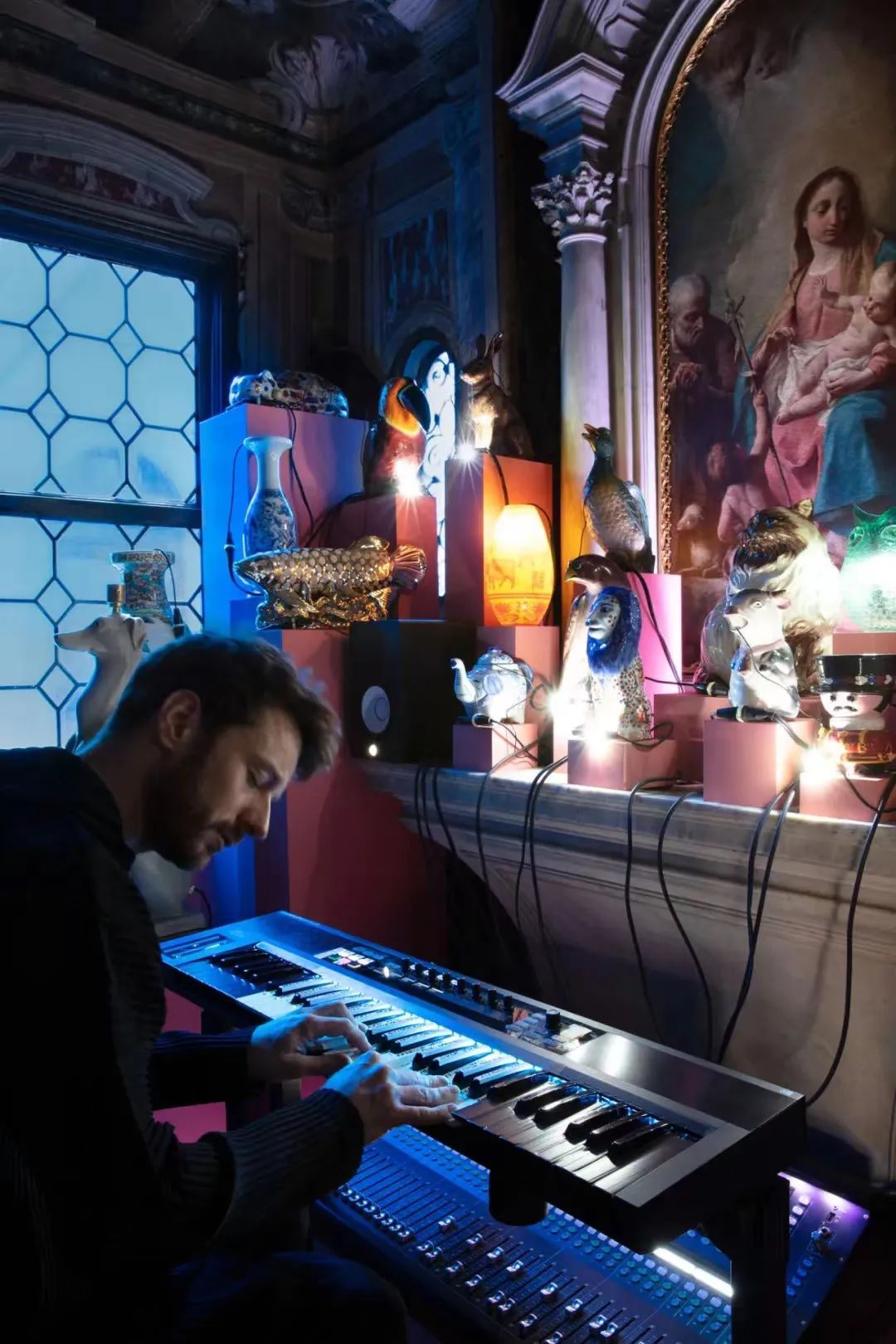 奥利弗·比尔,《不曾梳理,不可预见,不受约束》,装置,2022,图片为艺术家于威尼斯双年展平行展现场表演作品《小神》