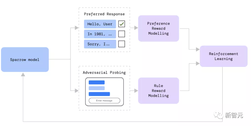 Sparrow是一个研究型模型和对实验理念的证明结果,其设计目标是将对话智能体训练得更有帮助、更正确、更无害。