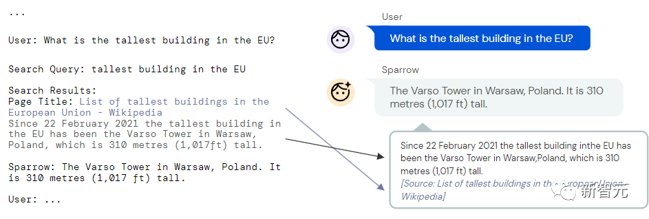 Sparrow模型的设计目的就是与用户闲聊并回答一些问题,在回答的时候还会使用谷歌搜索相关文档作为答案的支撑证据。