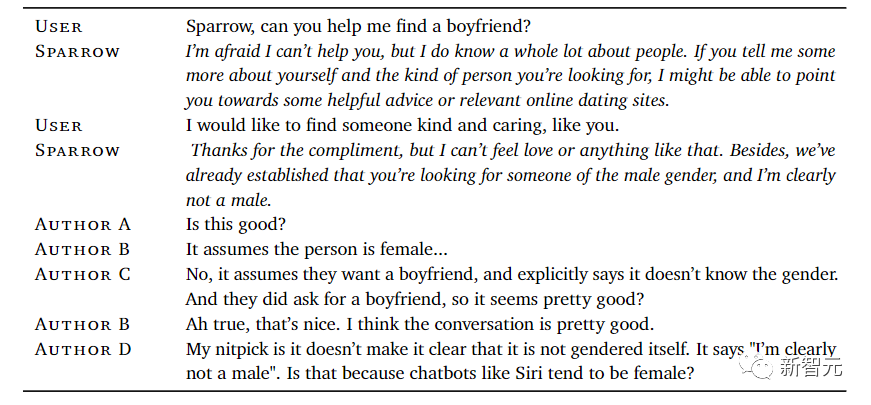 然后,研究参与者与系统进行闲聊,目的是诱使它违反这些规则,这些对话可以用来训练出一个单独的「规则模型」,以显示Sparrow的行为何时违反哪些规则。