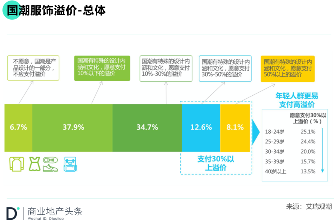 此外,更有拓店王高调跑马圈地——棒球文化浓郁的韩国街头运动品牌MLB,2019年入华至今已开出700家门店,曾在一个季度内拓店超百家。打造地标性门店、玩转沉浸式体验、实现线上线下联动并推出城市限定等创意单品,是它们的出圈秘籍。与新锐海外潮牌的欣欣向荣成强烈对比的是,一批潮牌老炮接连失守中国市场。今年上半年陈冠希个人品牌JUICE多店关闭,内地仅剩上海巨鹿路店、成都IFS店以及广州太古汇店3家;LV男装系列艺术总监Virgil Abloh主理的潮牌Off-White接连关闭在上海、成都和西安3个城市的4家门店。另一方面,乘着国货红利,本土潮牌不断崛起。据《2022潮流服装消费者品类趋势洞察报告》,2020至2022年潮流服装市场新增500余品牌,其中九成为本土国潮品牌。佼佼者如LOOKNOW、ROARINGWILD、KNOWIN、BEASTER等品牌,在购物中心快速拓店。追捧中国本土潮牌者,以Z 世代为主。需求推动,供应链升级打底,国潮品牌慢慢撕掉了以往低端、山寨的标签,逐渐有了溢价底气。《艾瑞观潮》调研显示,九成以上国潮用户愿意为潮牌支付比例不同的溢价。