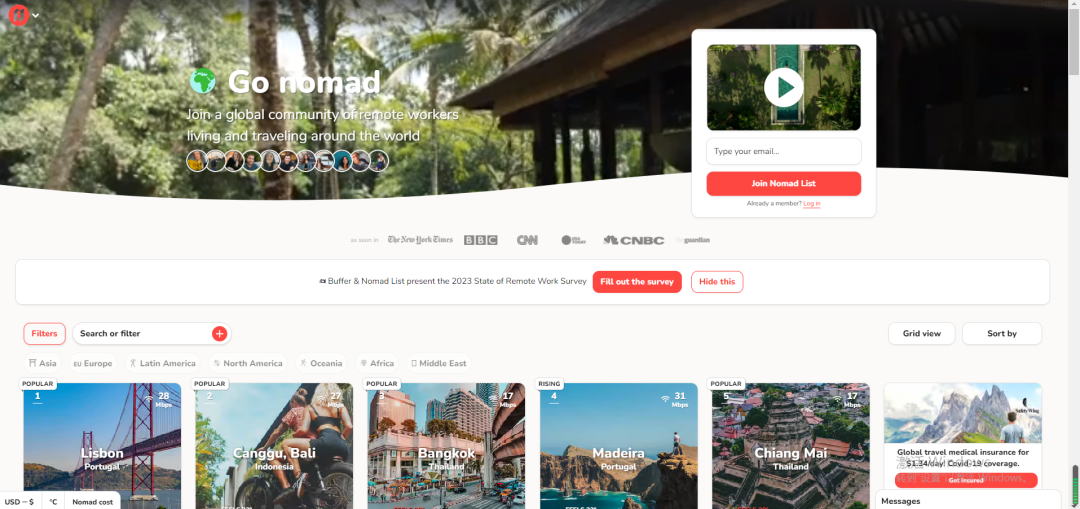 各地可以将自身生活质量和成本、气候条件、网速等上传至相关网站,以吸引更多数字游民。同时这些平台大多具有社交属性,比如在nomadlist上的每个城市都有专门的论坛和聊天室,更有利于宣传交流。