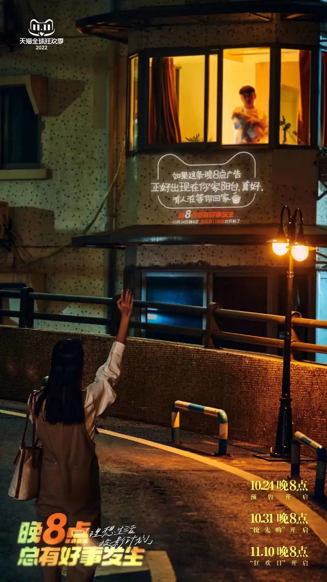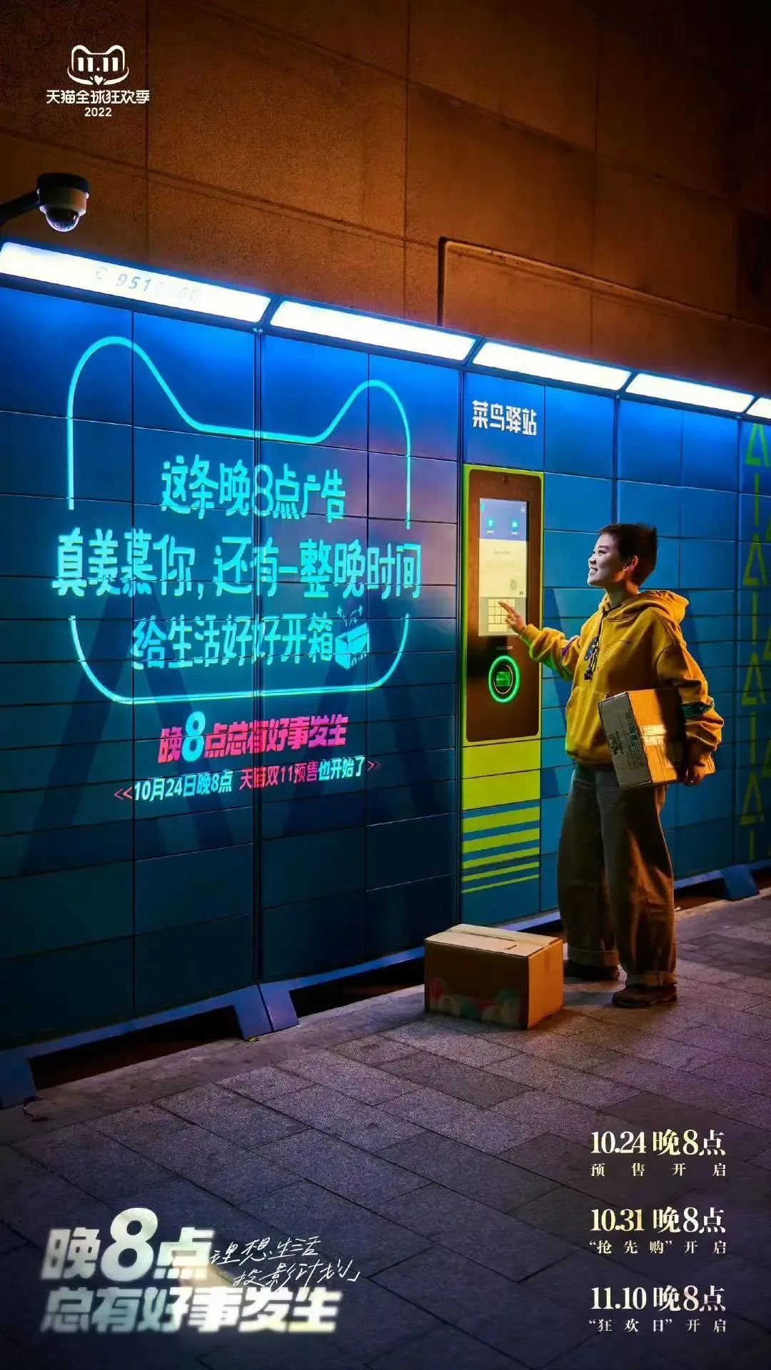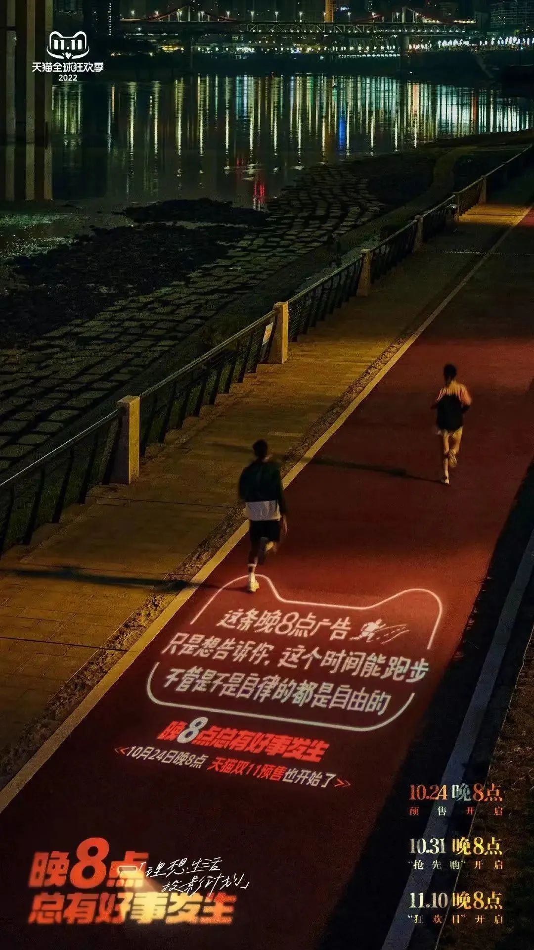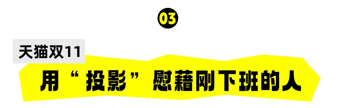 通过将文案以投影的形式展出在停车场、花店、快递柜等夜晚的生活场景,提醒大家再忙碌也记得留出自己的放空时间,同时带出天猫双11“晚8点”的大促时间点。