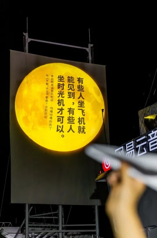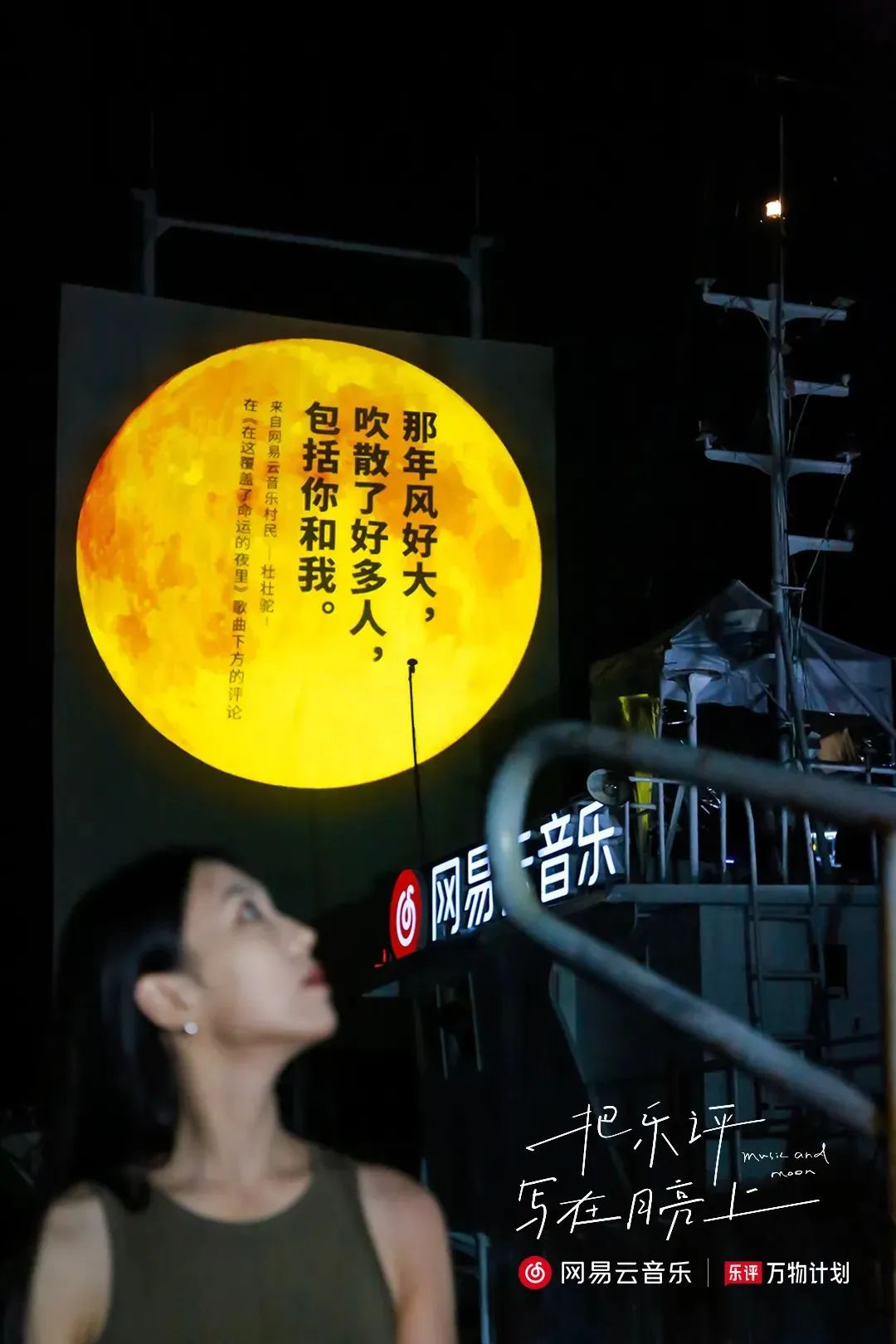 继把戳人乐评搬上地铁、大学校园、印在红墙上之后,今年中秋节,网易云音乐另辟蹊径地将乐评文案写在了“月亮”上。